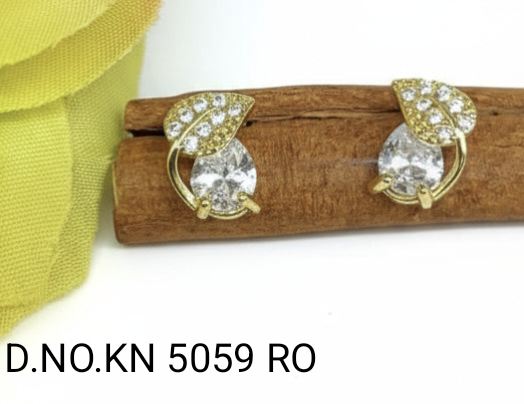 Cz Ad Golden Tops & Stud Earrings Sku KN 5059 RO/C-1