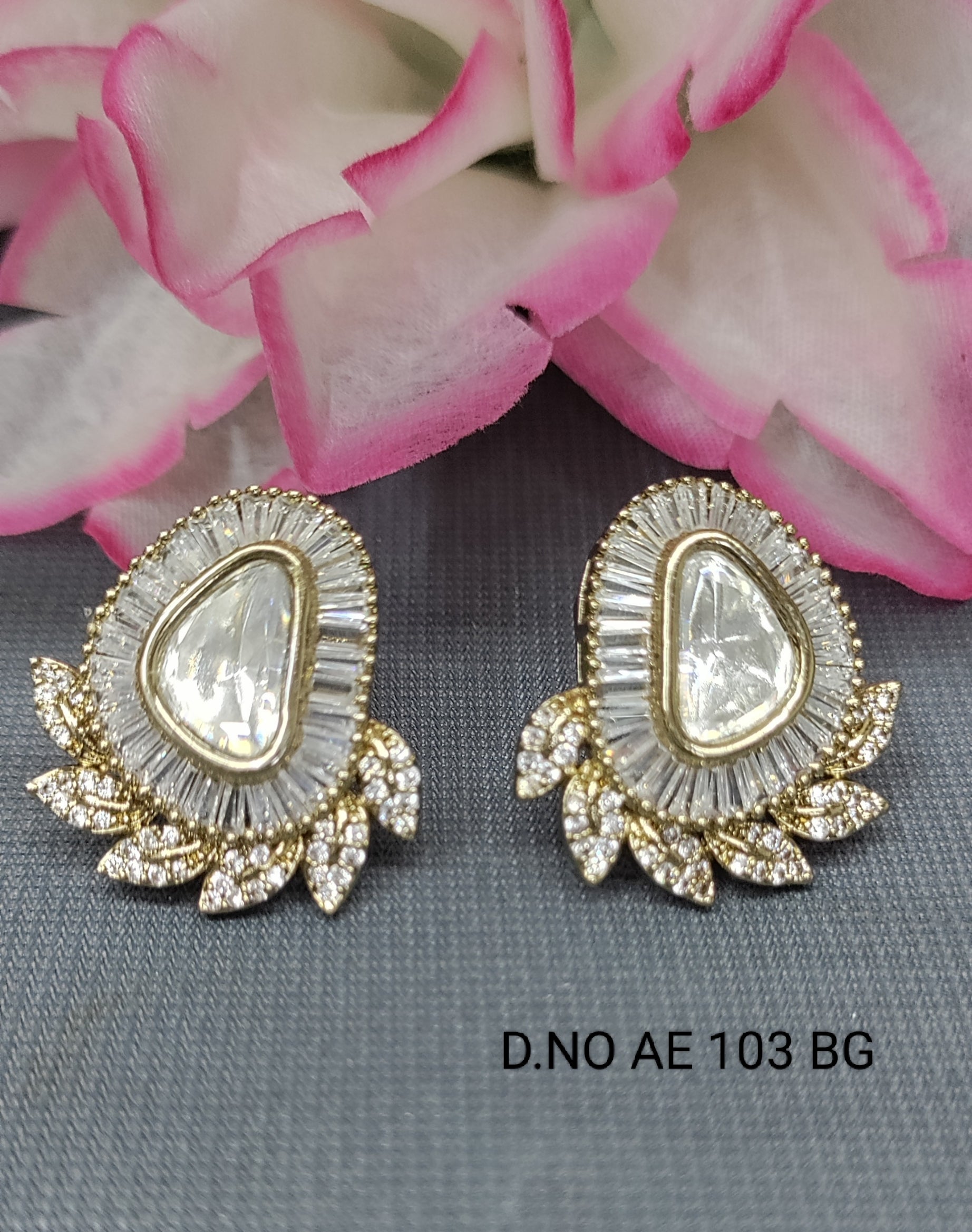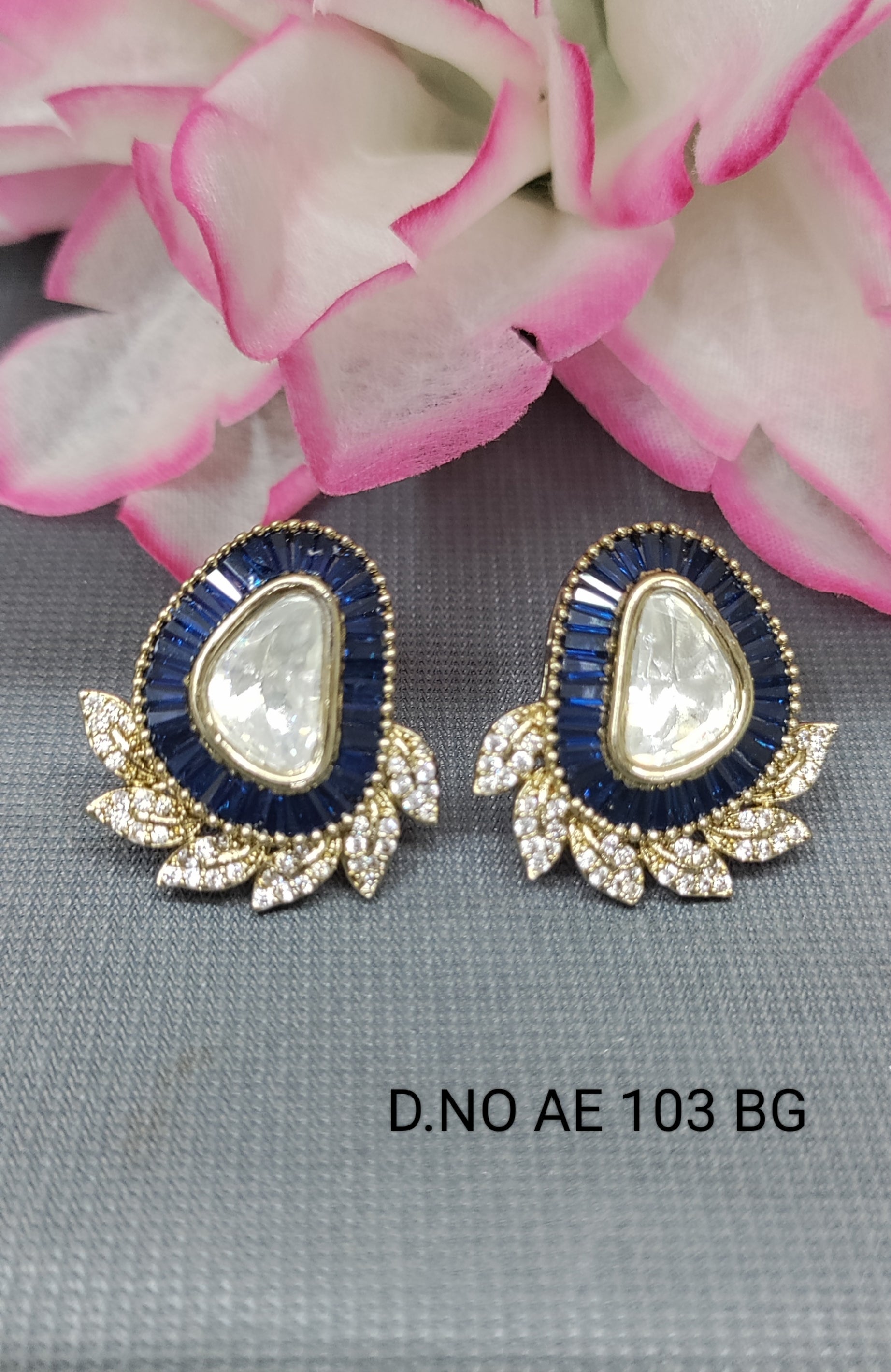 Cz Ad Moissanite Mehandi Tops & Stud Earrings Sku AE 103 BG/C9