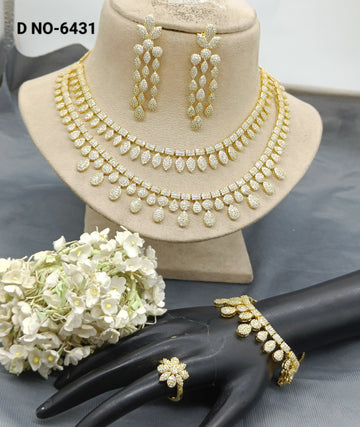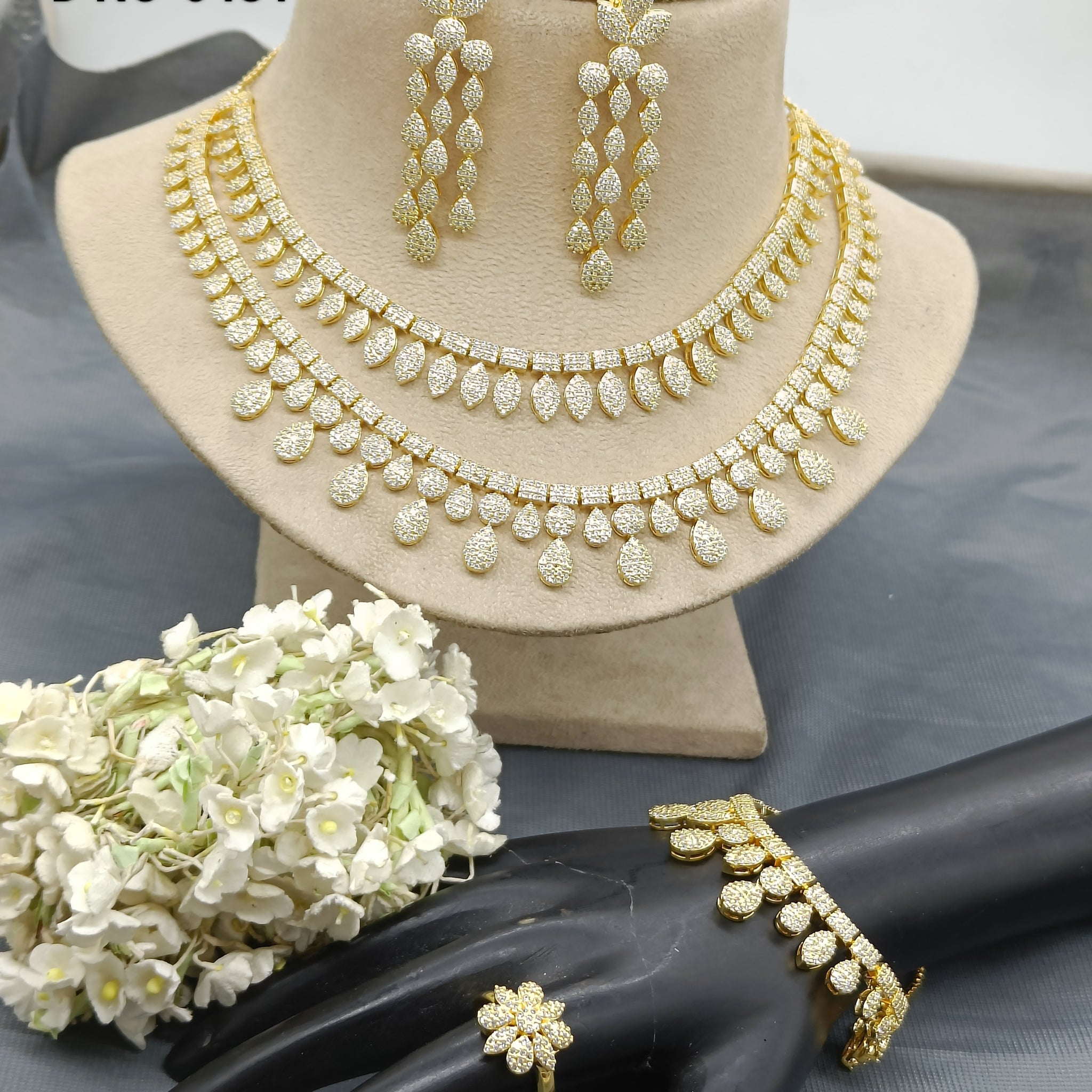 necklace set with braslet,Finger ring (sku - 6429) features a stunning combination of Nano stones that add a touch of elegance to any outfit. Made from high-quality materials, this set is perfect for any formal occasion or everyday wear. Elevate your style with this beautiful necklace set.
