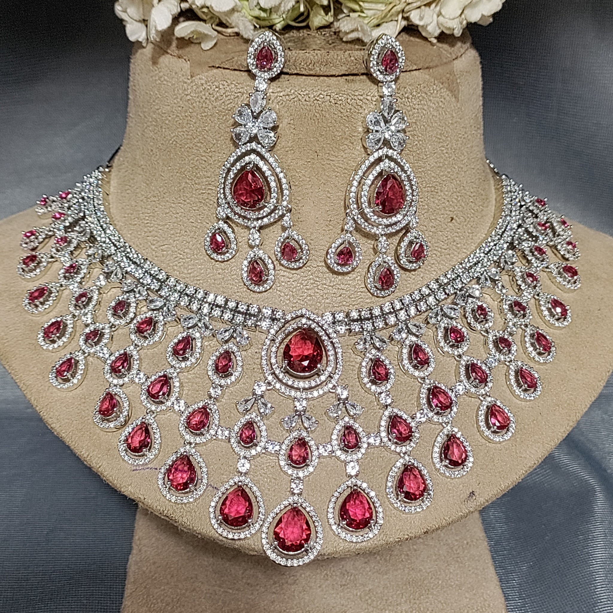 Cz ad Rodium Bridal Necklace Set Sku AN 021 BN/C-7
