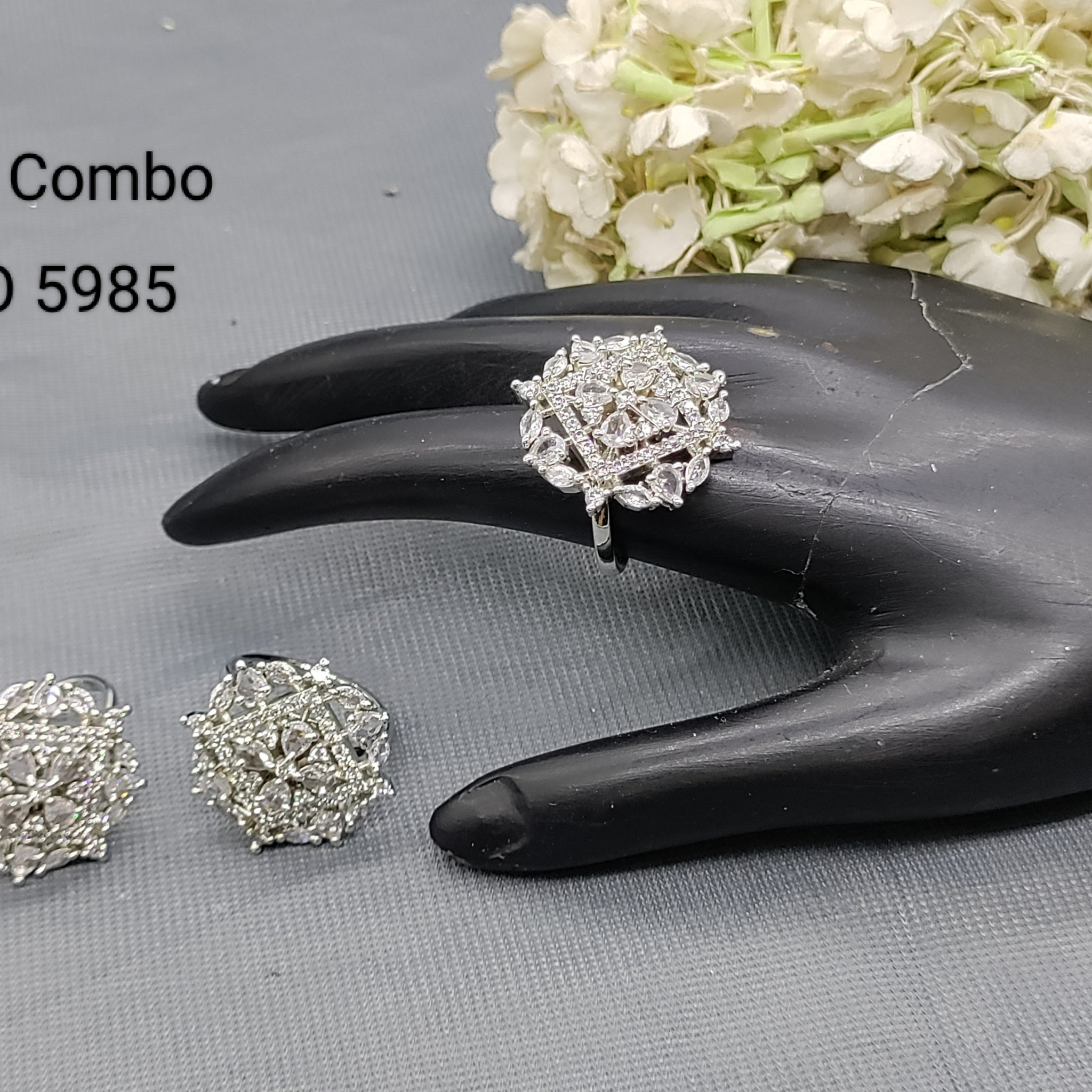 Cz Ad Rodium Finger Ring 3 Pc Combo Sku 5985 E4
