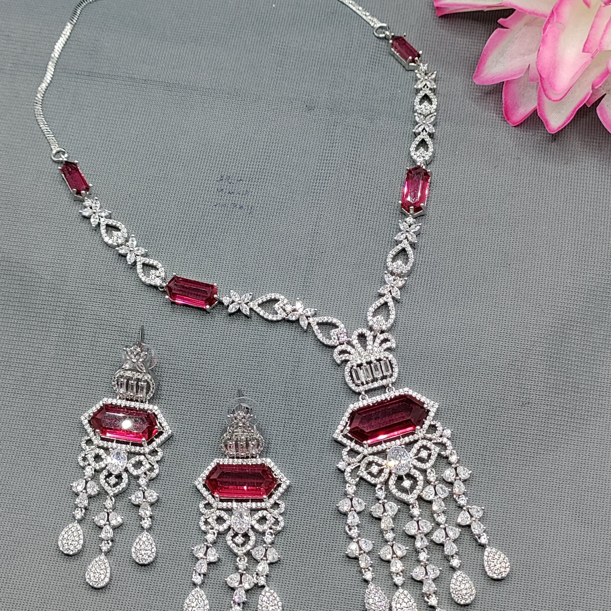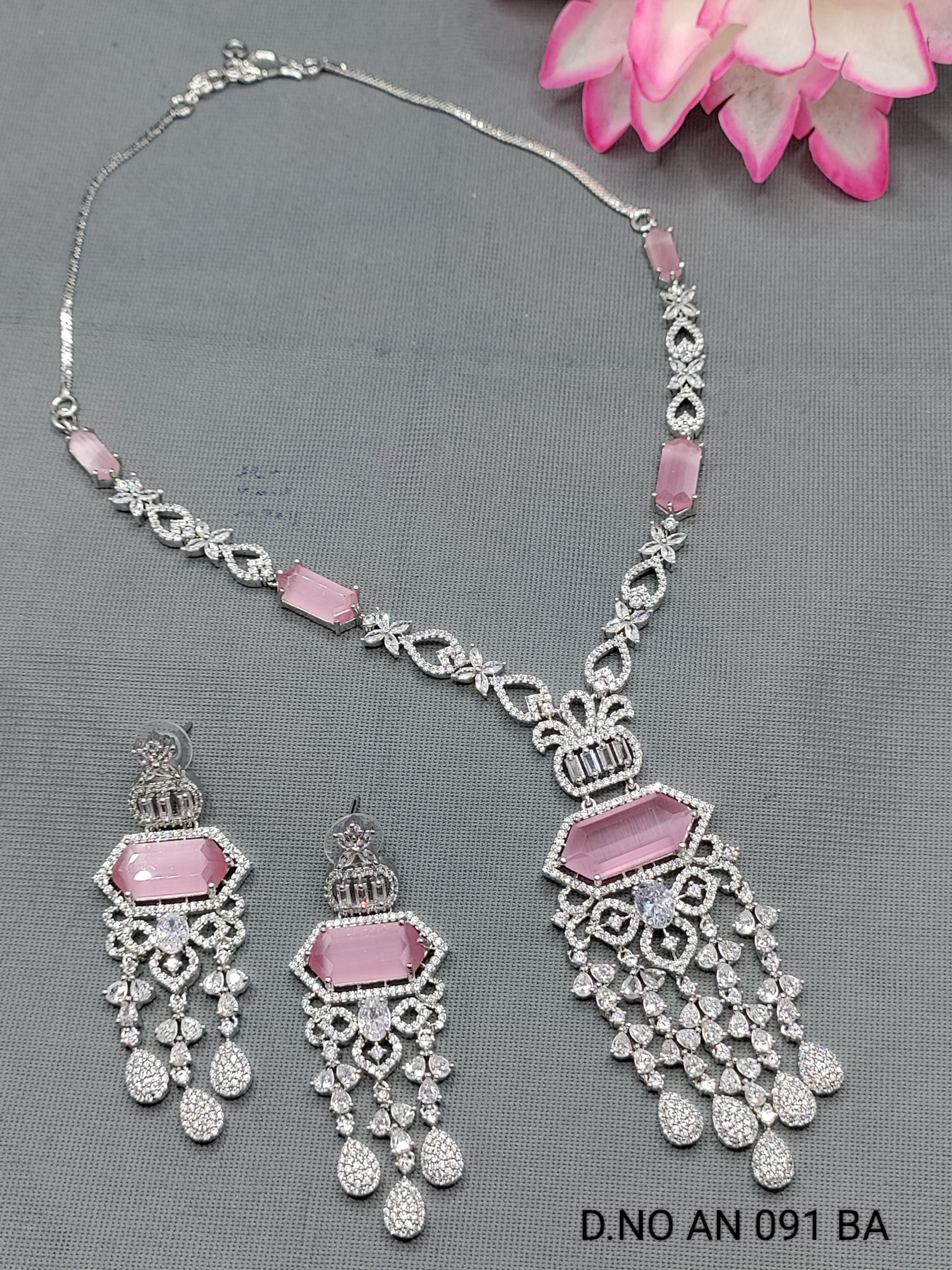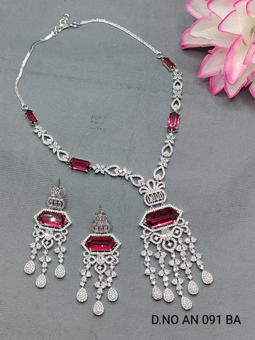 Cz Ad Rodium Necklace Set Sku AN 091 BA/C-7