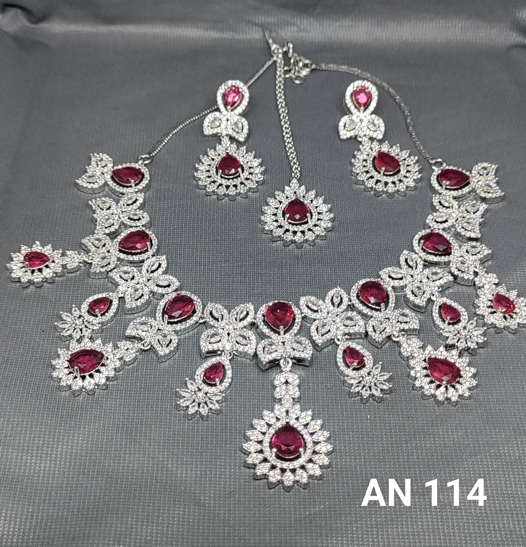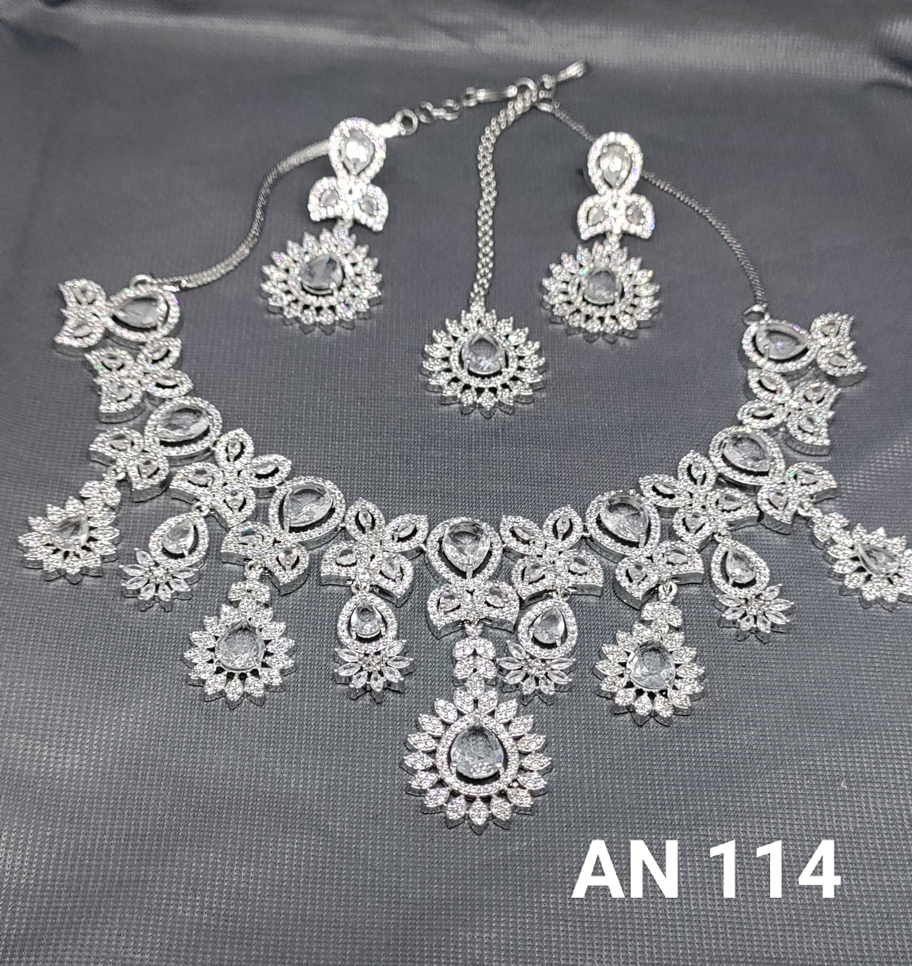 Cz Ad Rodium Necklace Set SKU AN 114 AR/C-7