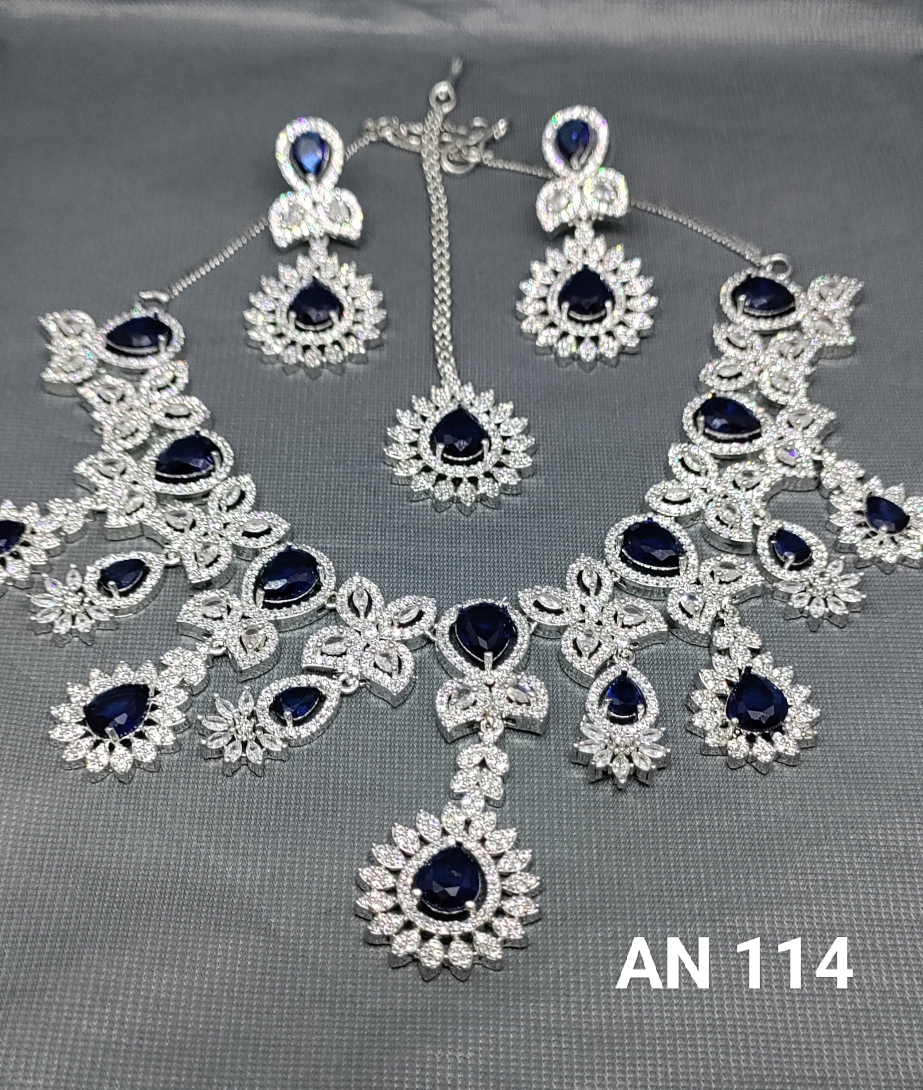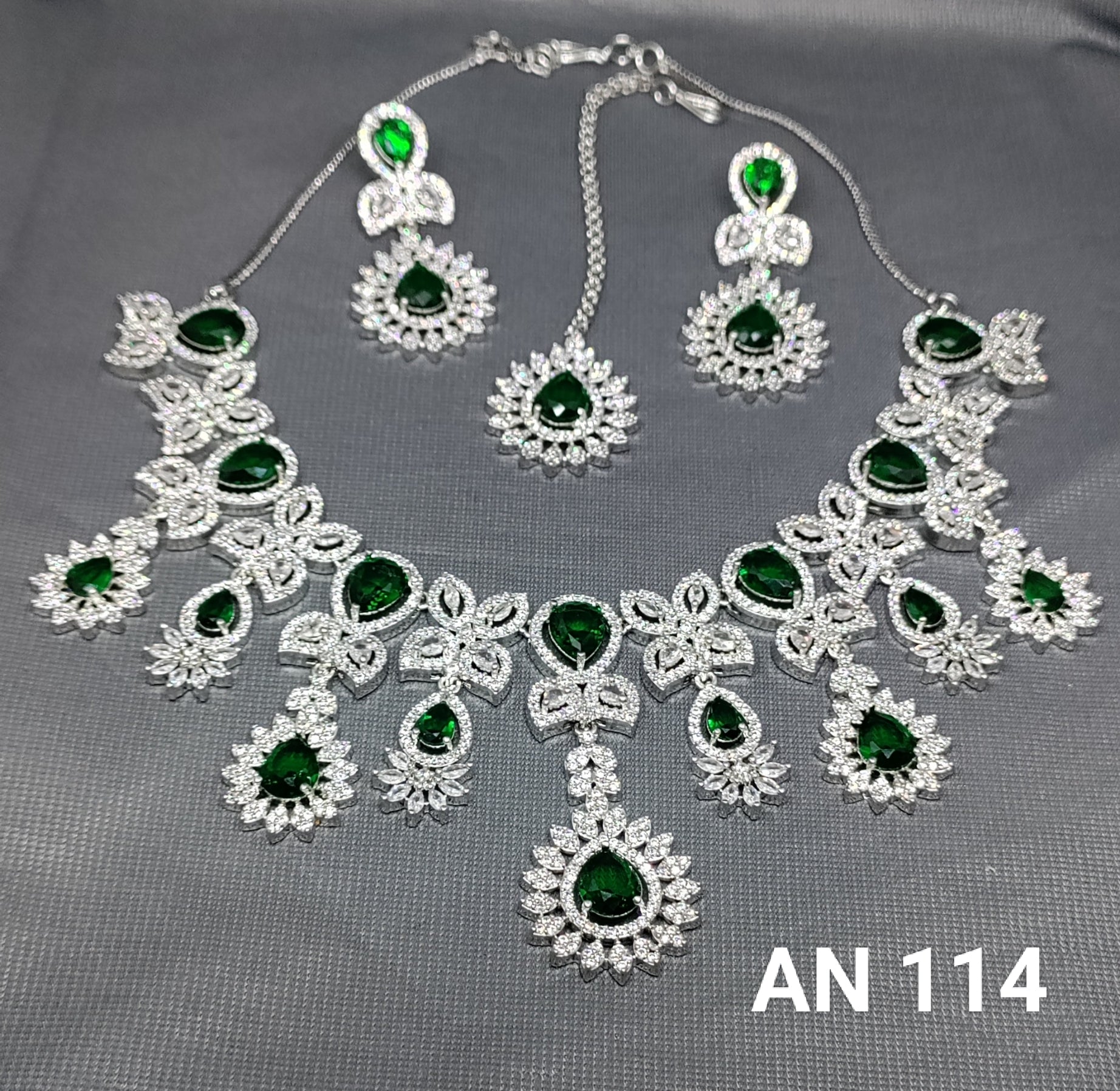 As a leader in CZ jewelry, our CZ AD RODIUM NECKLACE SET SKU AN 114 AR offers a luxurious and elegant look. Made with high-quality CZ stones, this necklace is designed to make a statement and enhance any outfit.