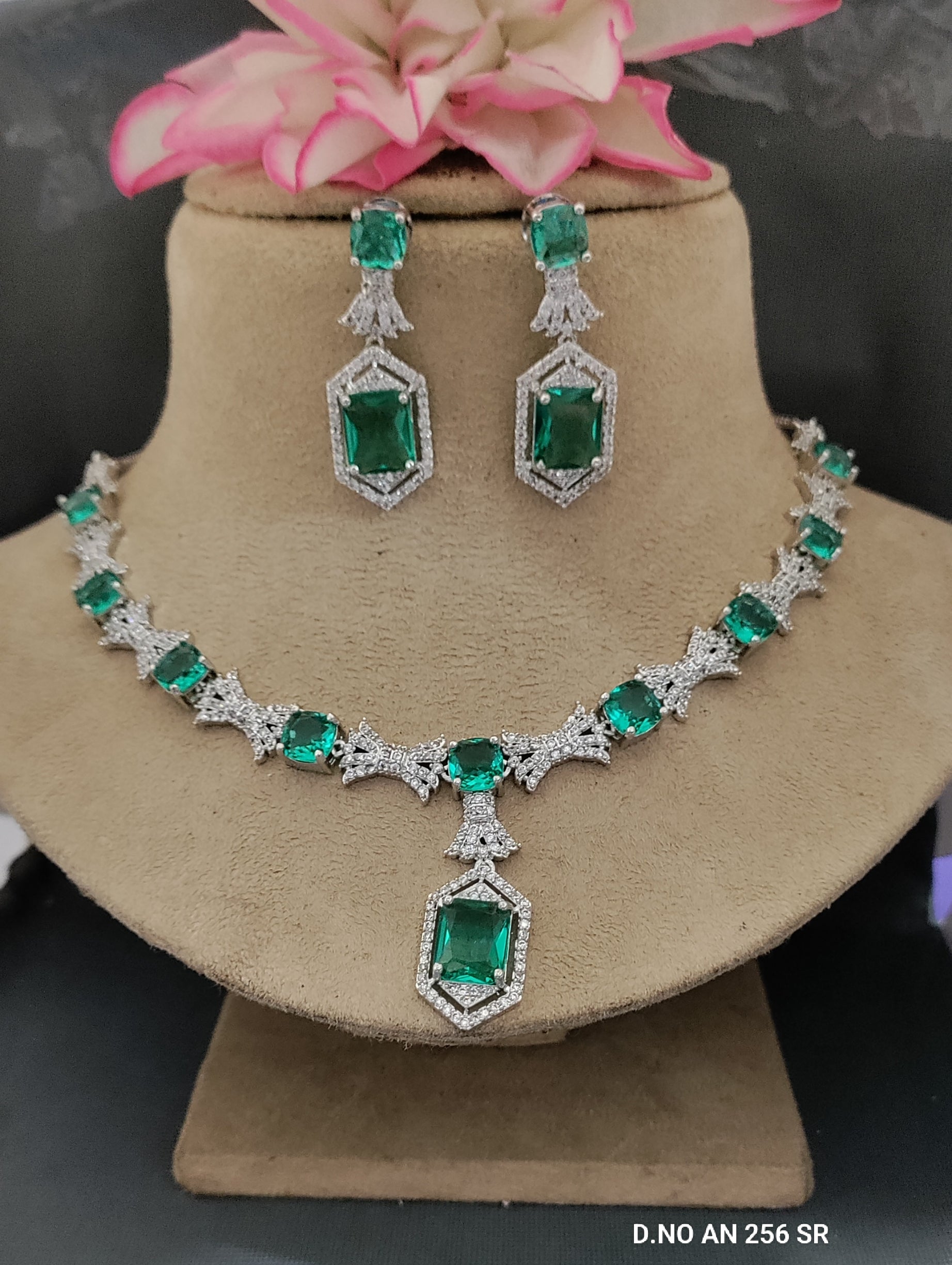 Cz Ad Rodium Necklace sku AN 256 SR C-3