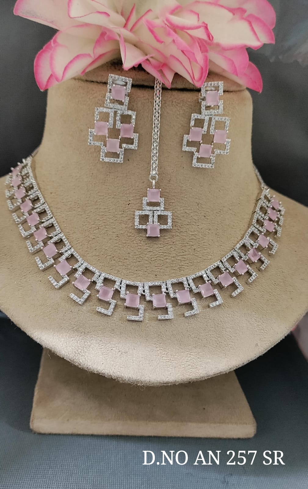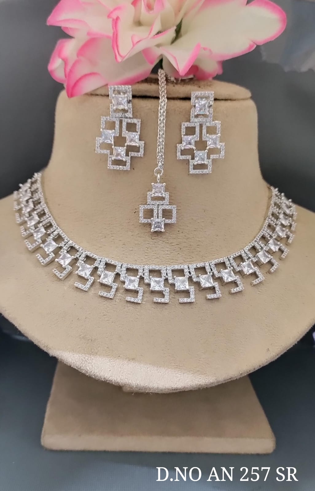 Cz Ad Rodium Necklace Sku AN 257 SR C-3