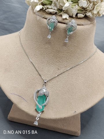 Cz Ad Rodium Pendant & Earring Sku AN 015 BA/C-7
