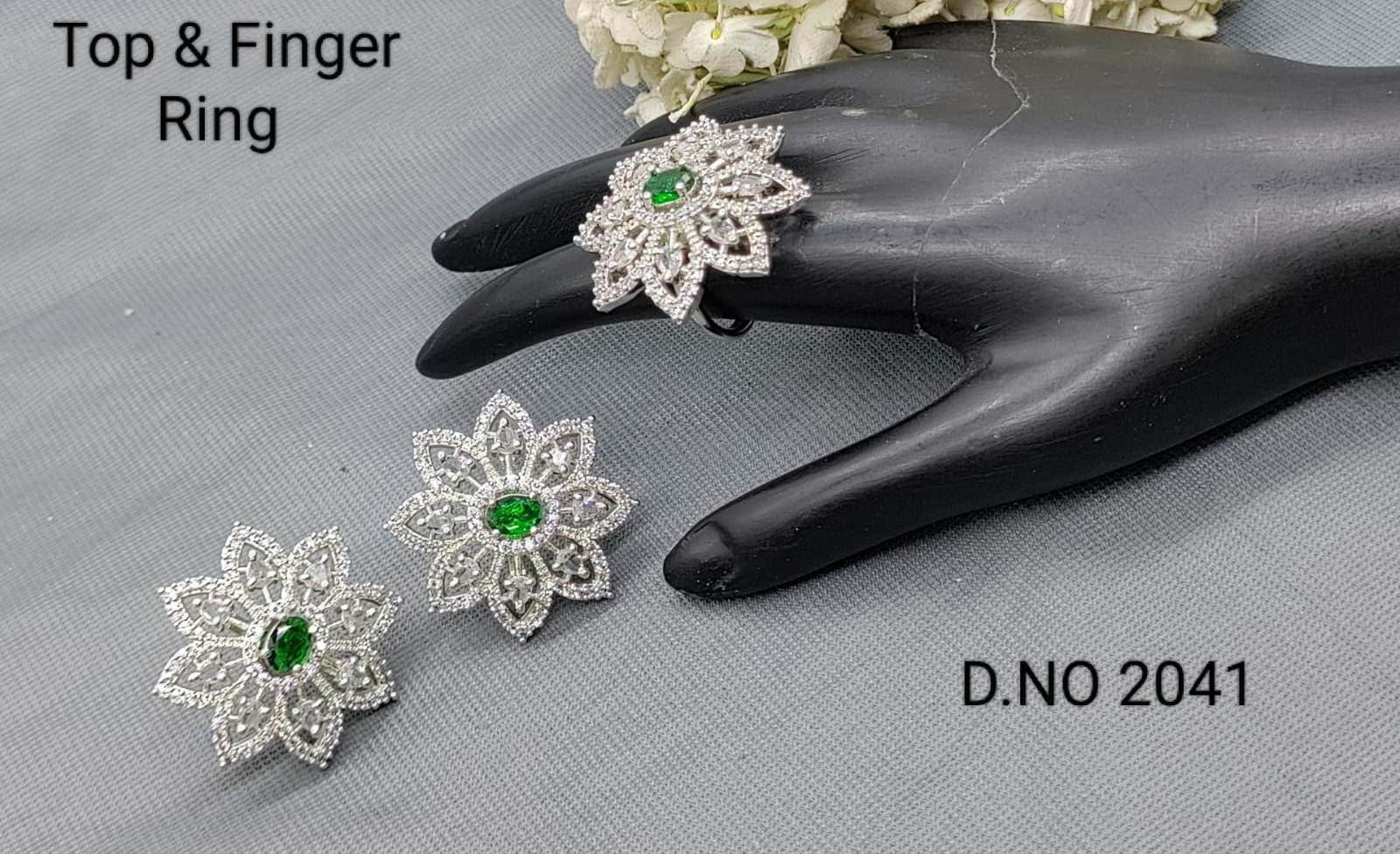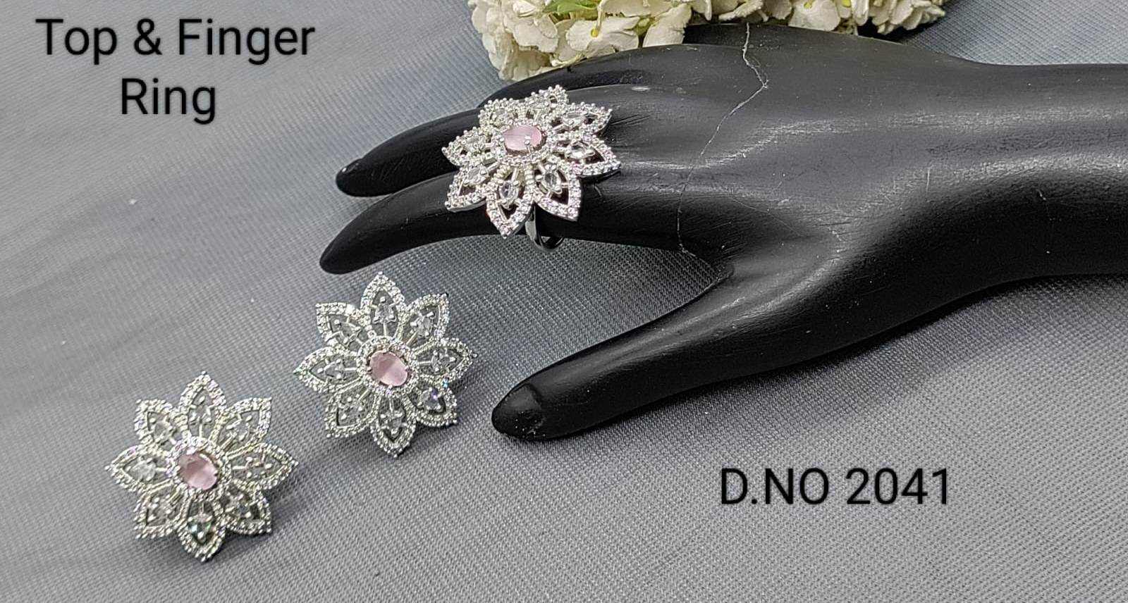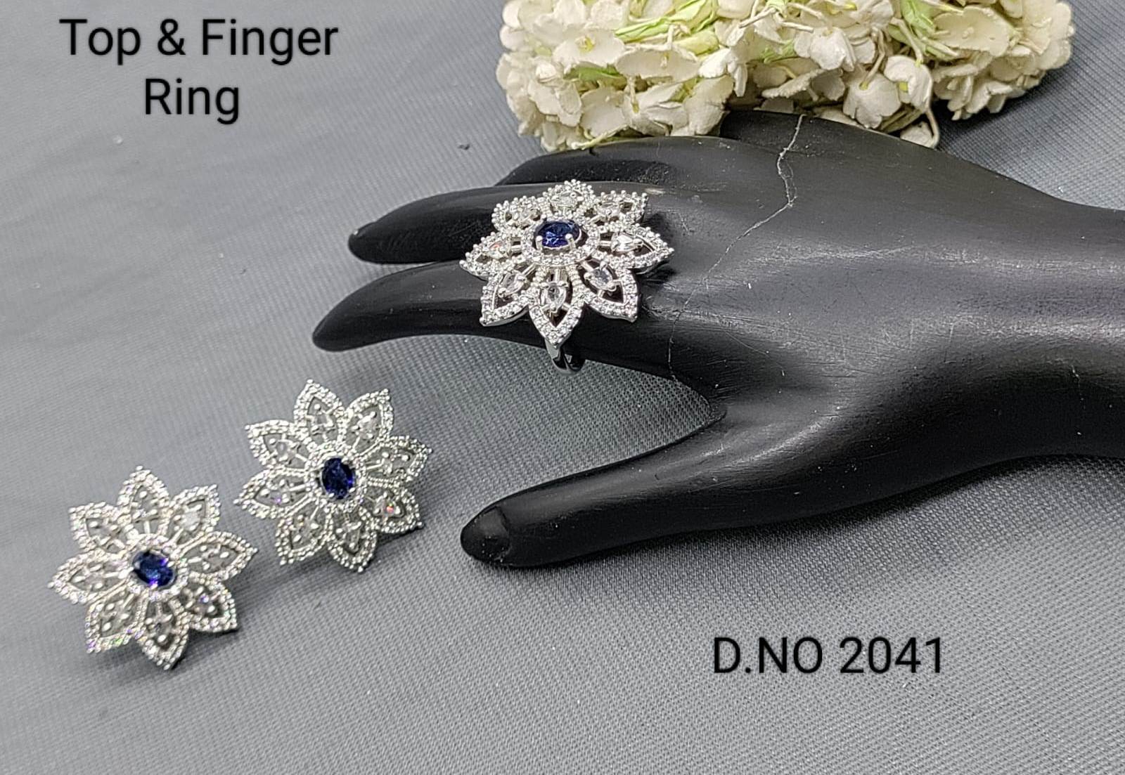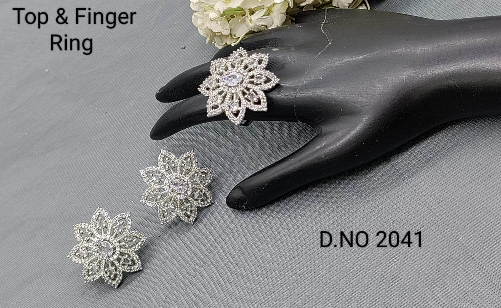 Cz Ad Rodium Tops & Finger Ring Sku 2041 C-1