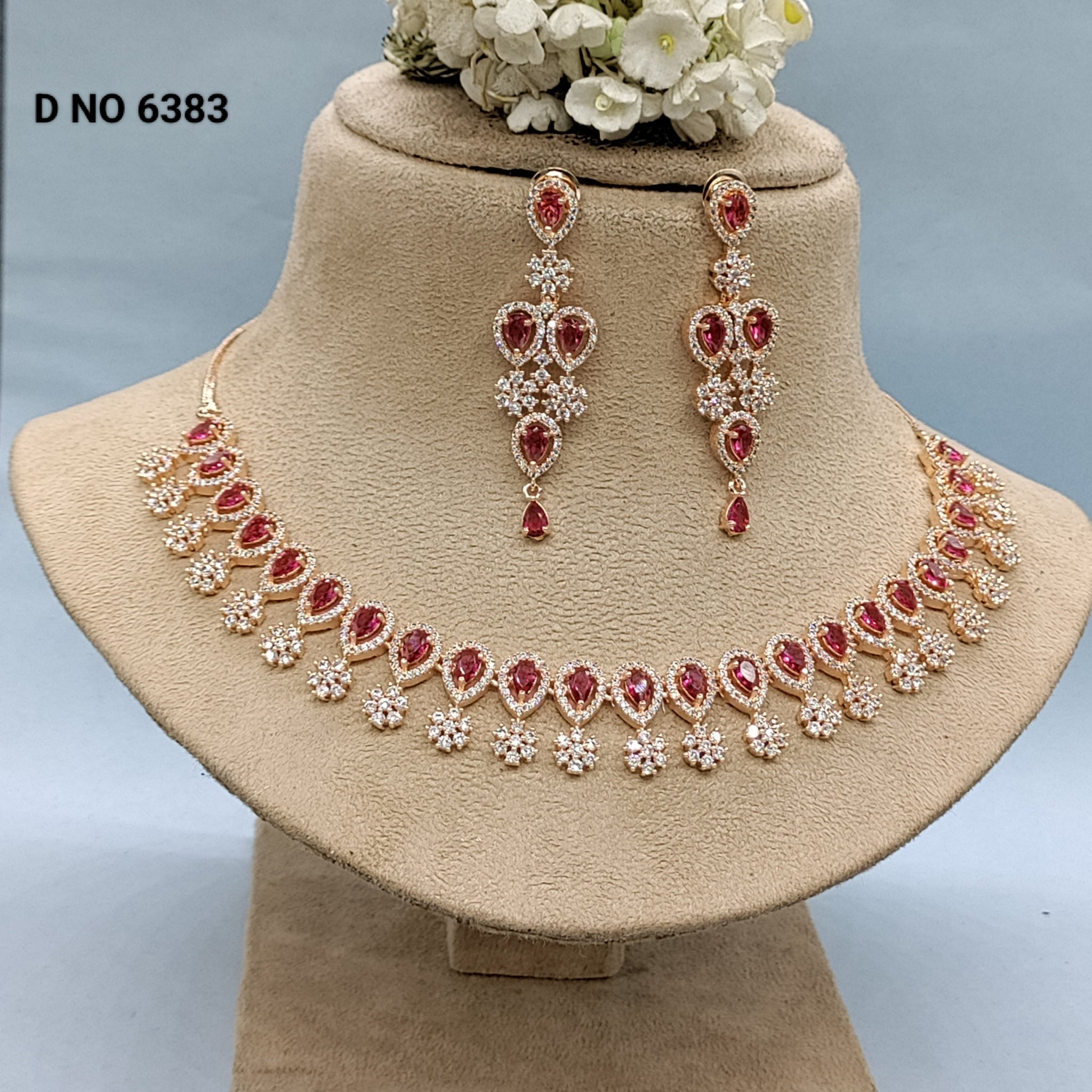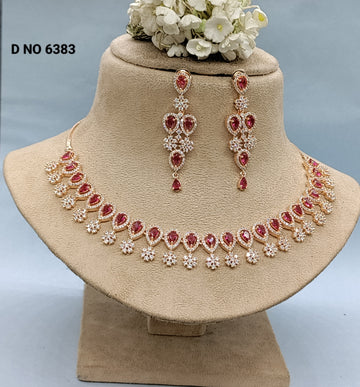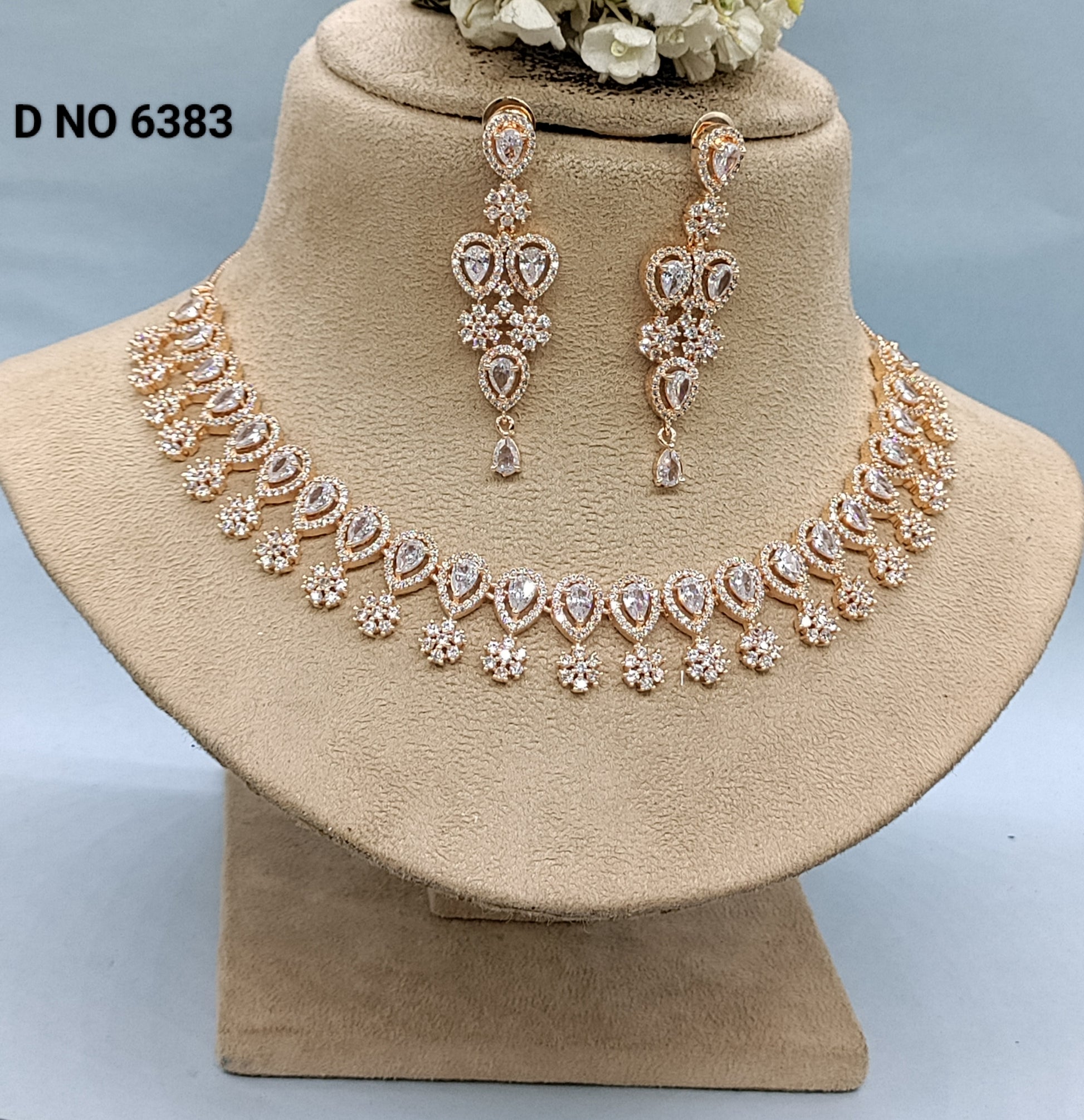 Cz Ad RoseGold Necklace Sku- 6383 C-6