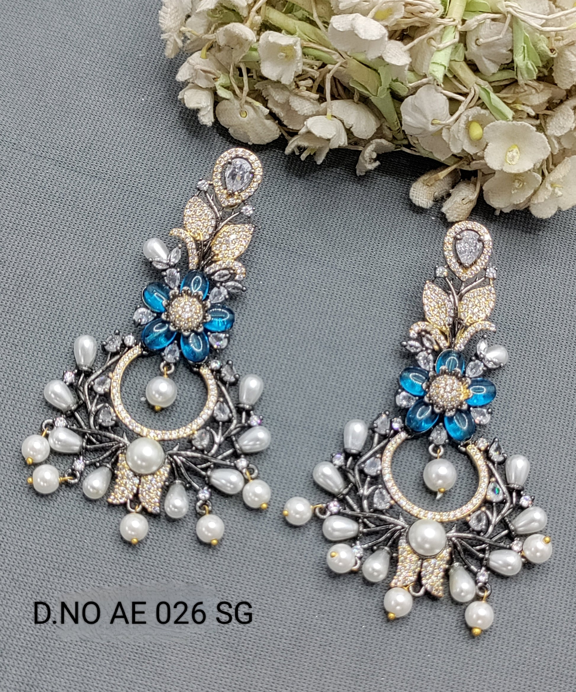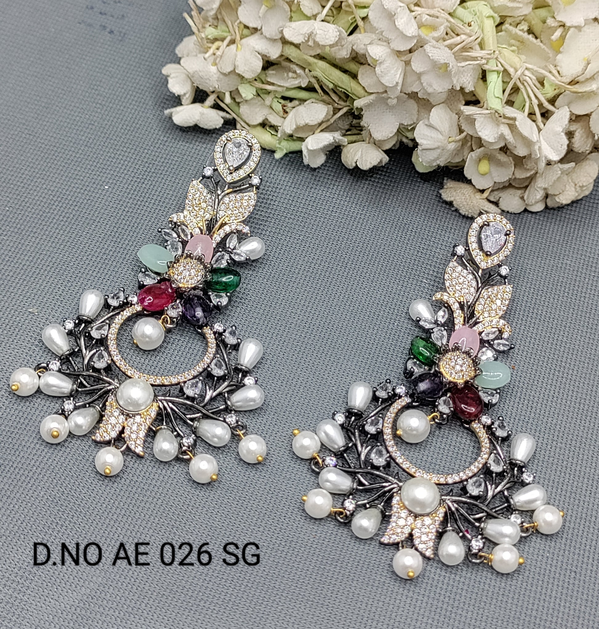 Cz Ad Victorian To Tone Earrings Sku AE 026 SG C1