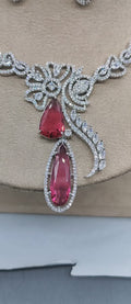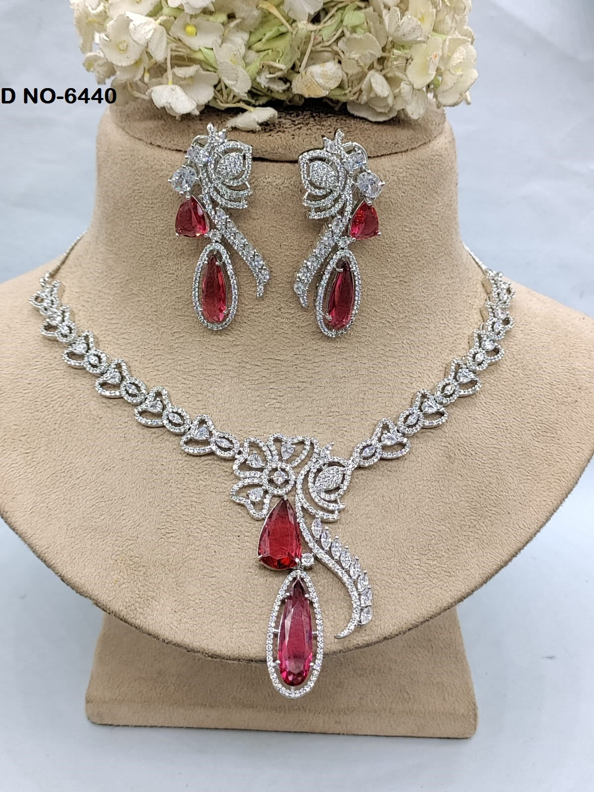This CZ American Diamond necklace (SKU-6440) features a stunning and high-quality American set design. Crafted with precise attention to detail, this necklace offers exceptional brilliance and durability. Elevate any outfit with this elegant piece that is sure to make a statement.