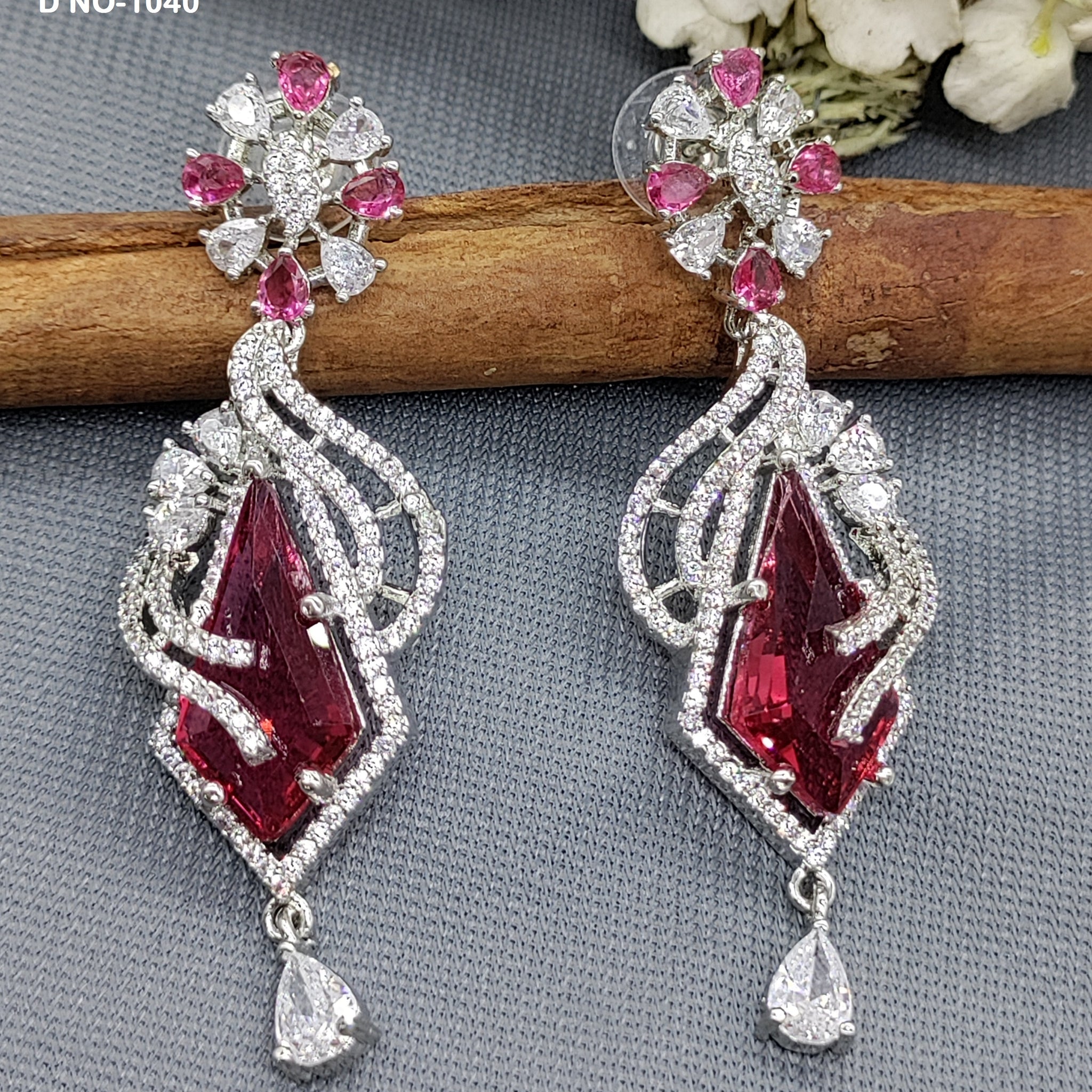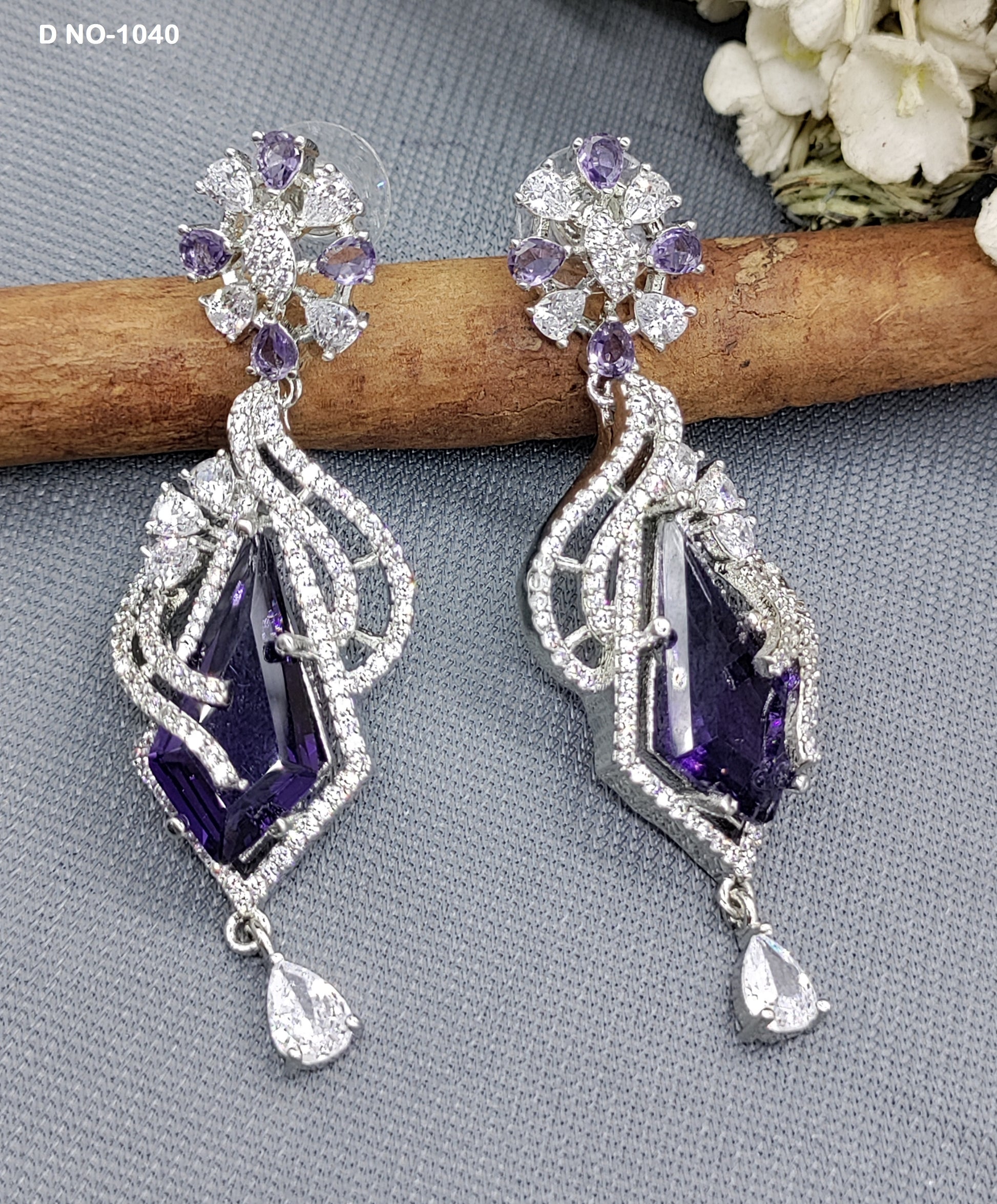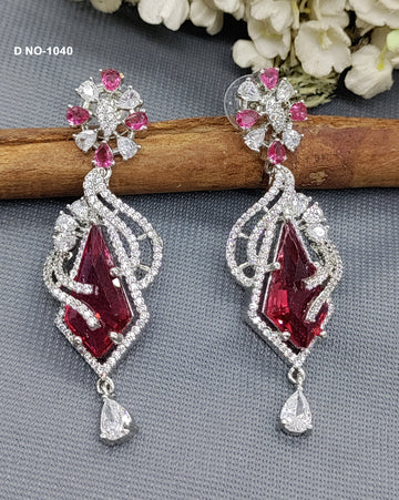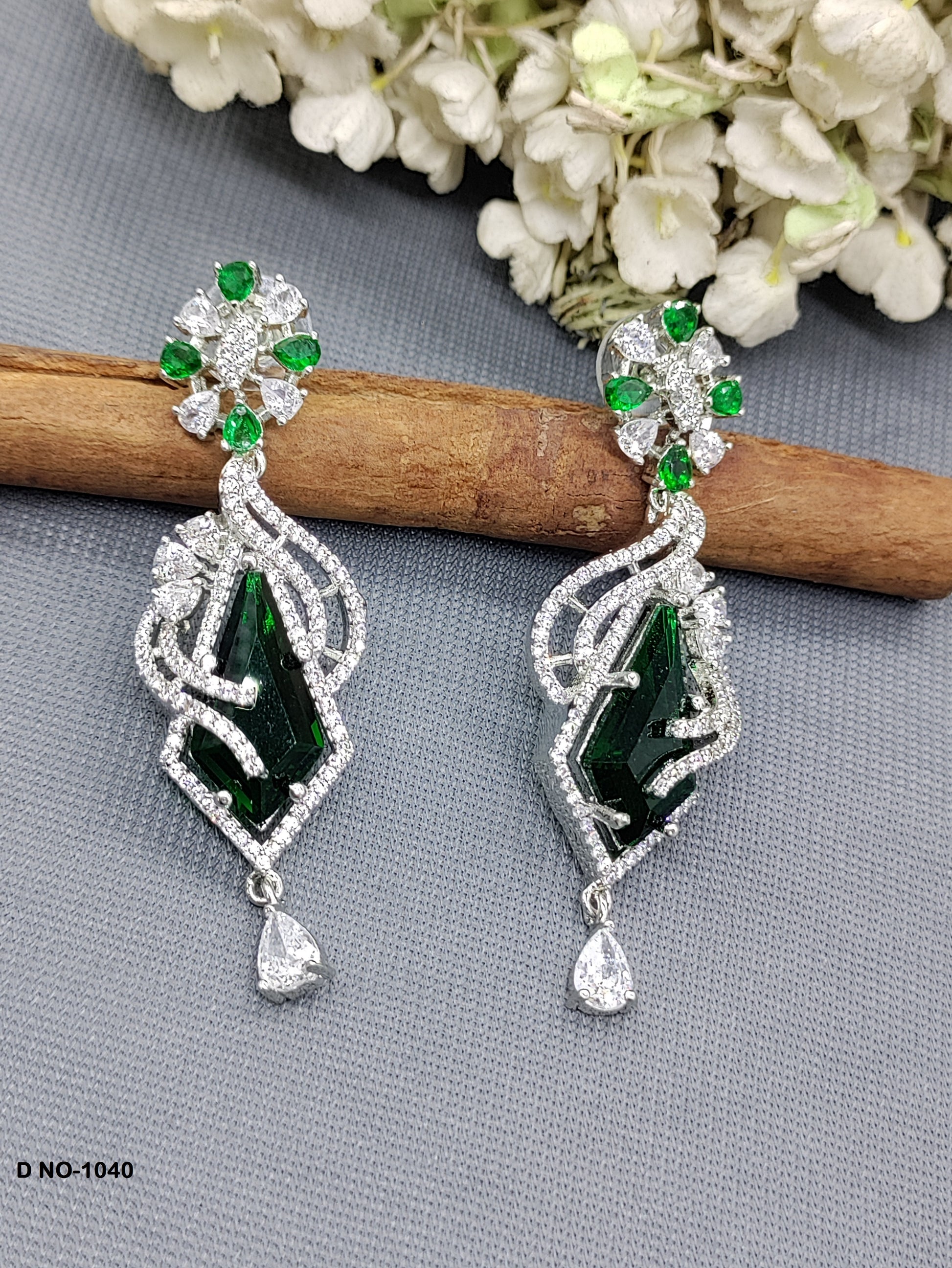 Cz Ad sliverwhite polished Earrings feature stunning american diamond stone accents. Perfect for adding a touch of elegance to any outfit. Made with high-quality brass material