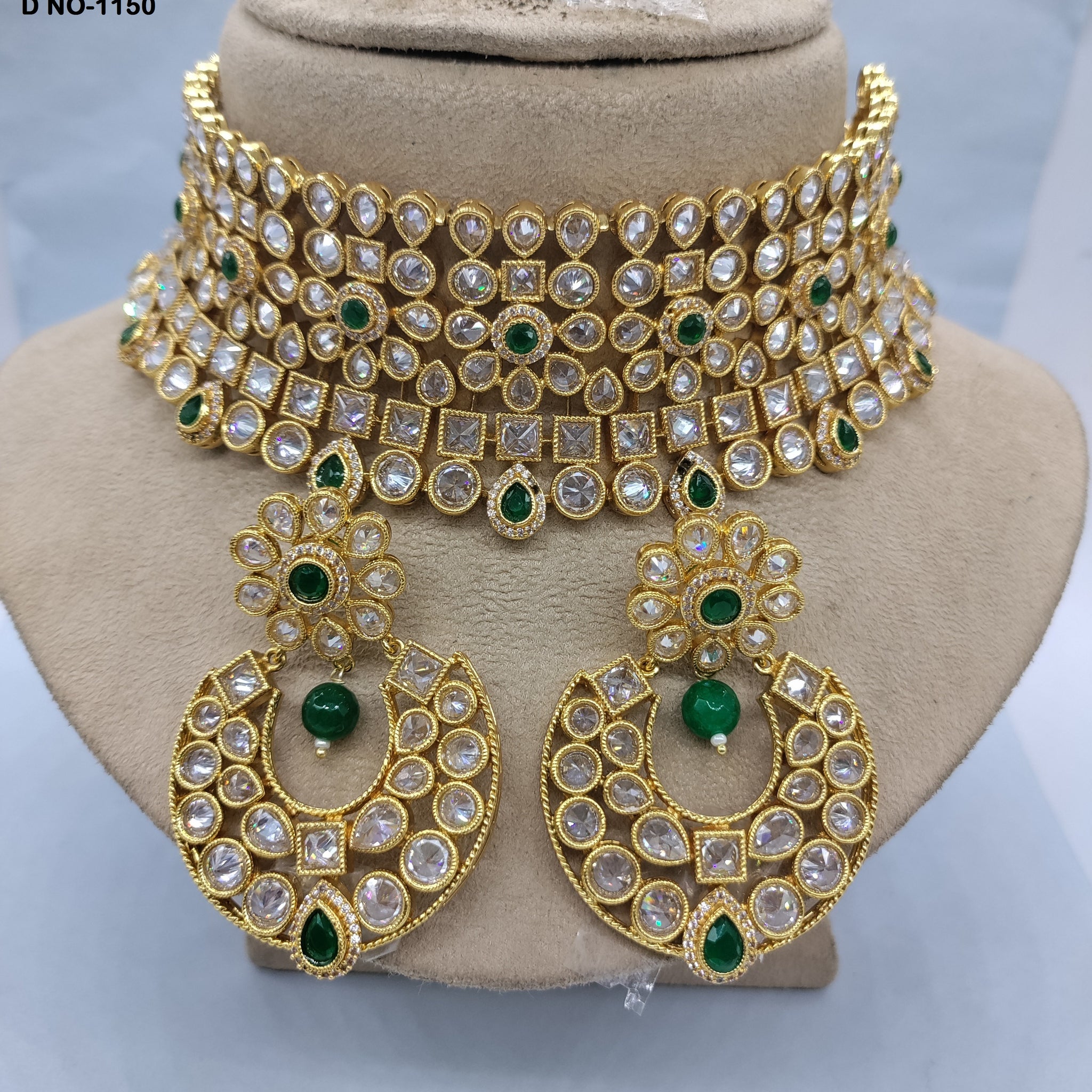 Golden Bridal White Polki Necklace Sku-1150 B-9