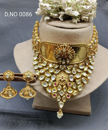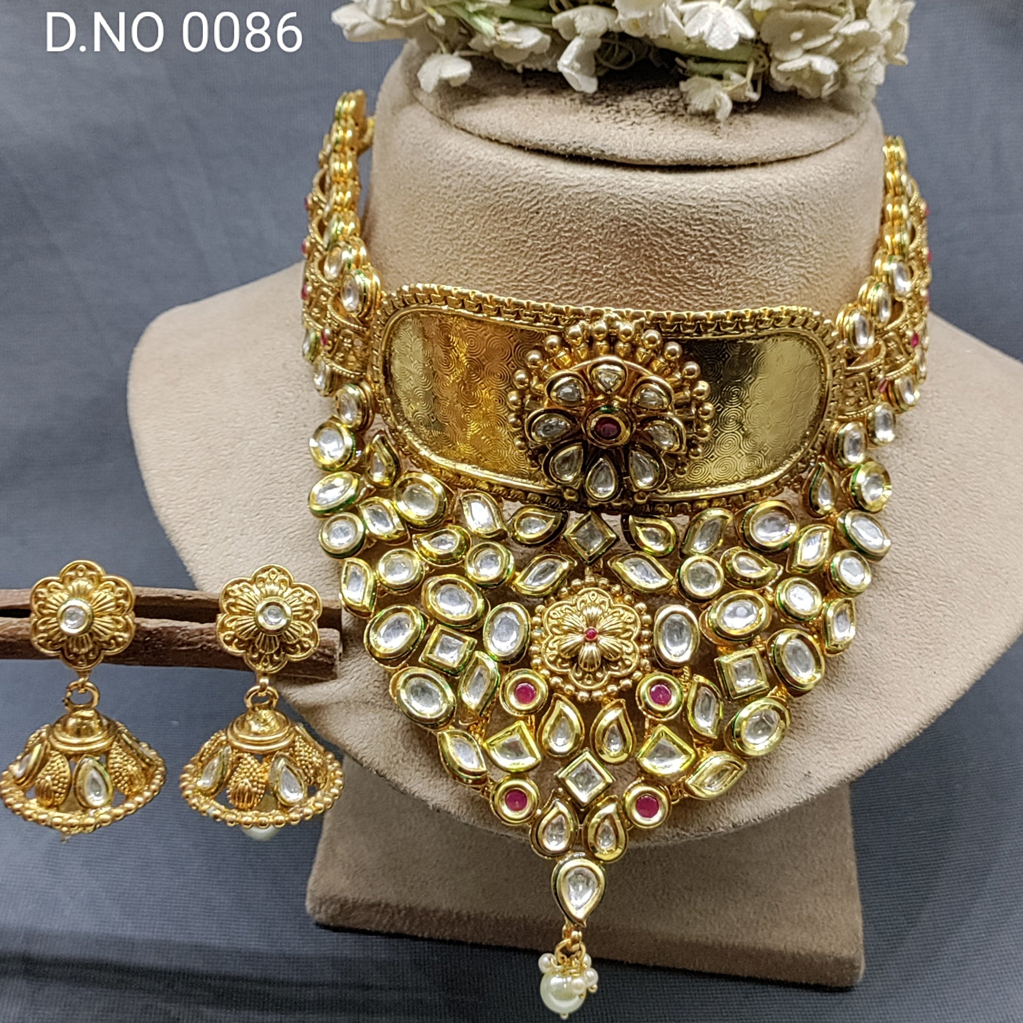 Golden Kundan Bridal Chokar Necklace Sku 0086 D-4