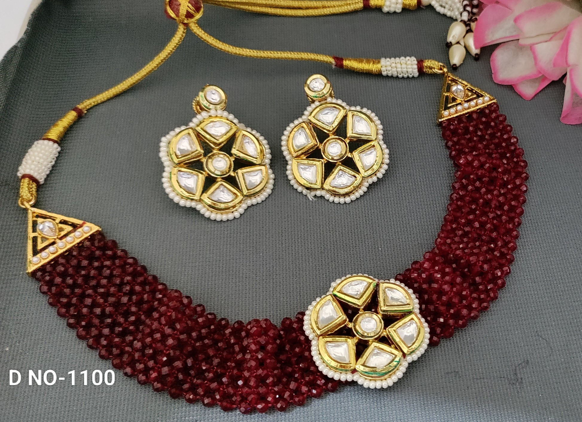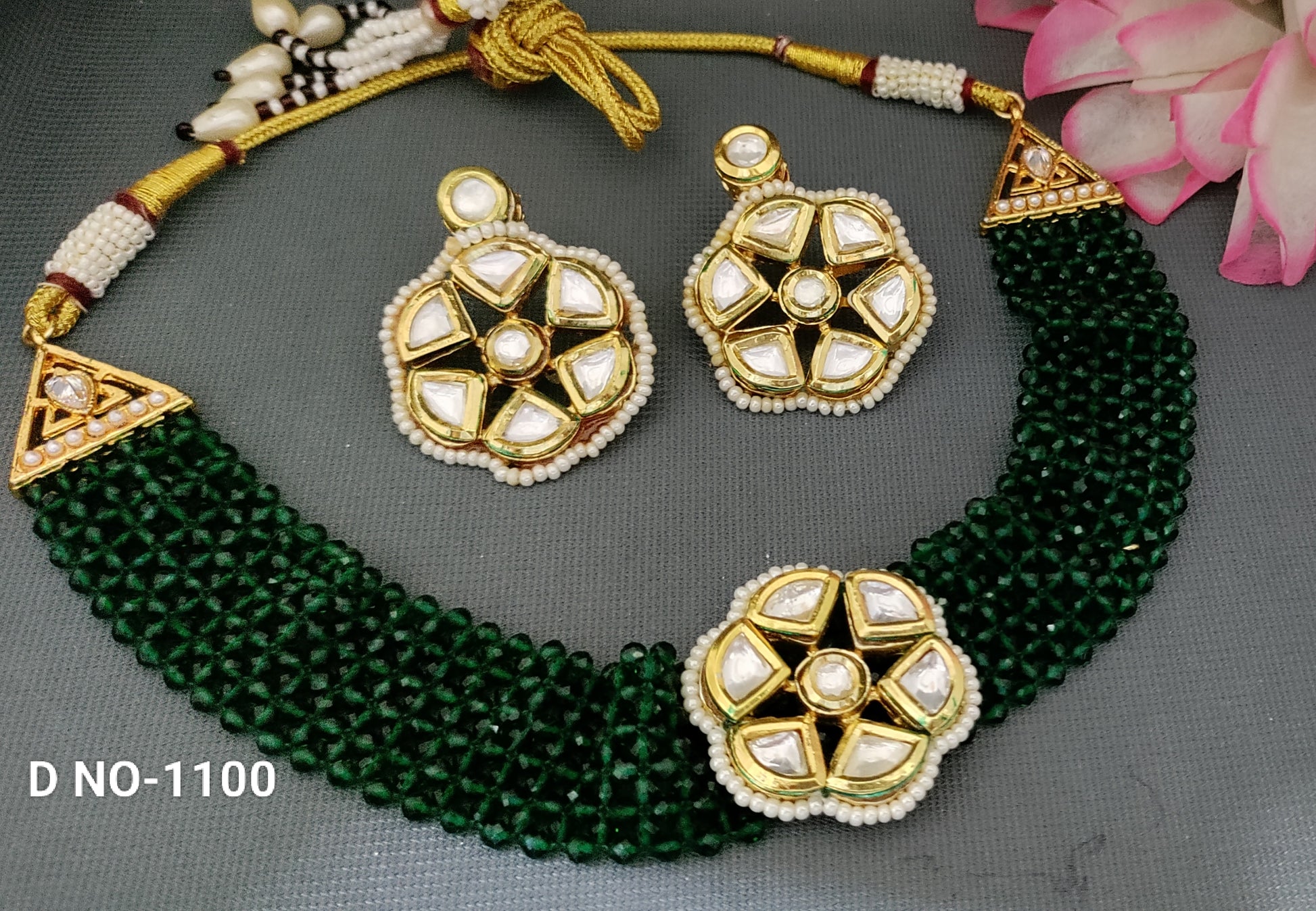 Golden Kundan Choker Necklace SKU-1100