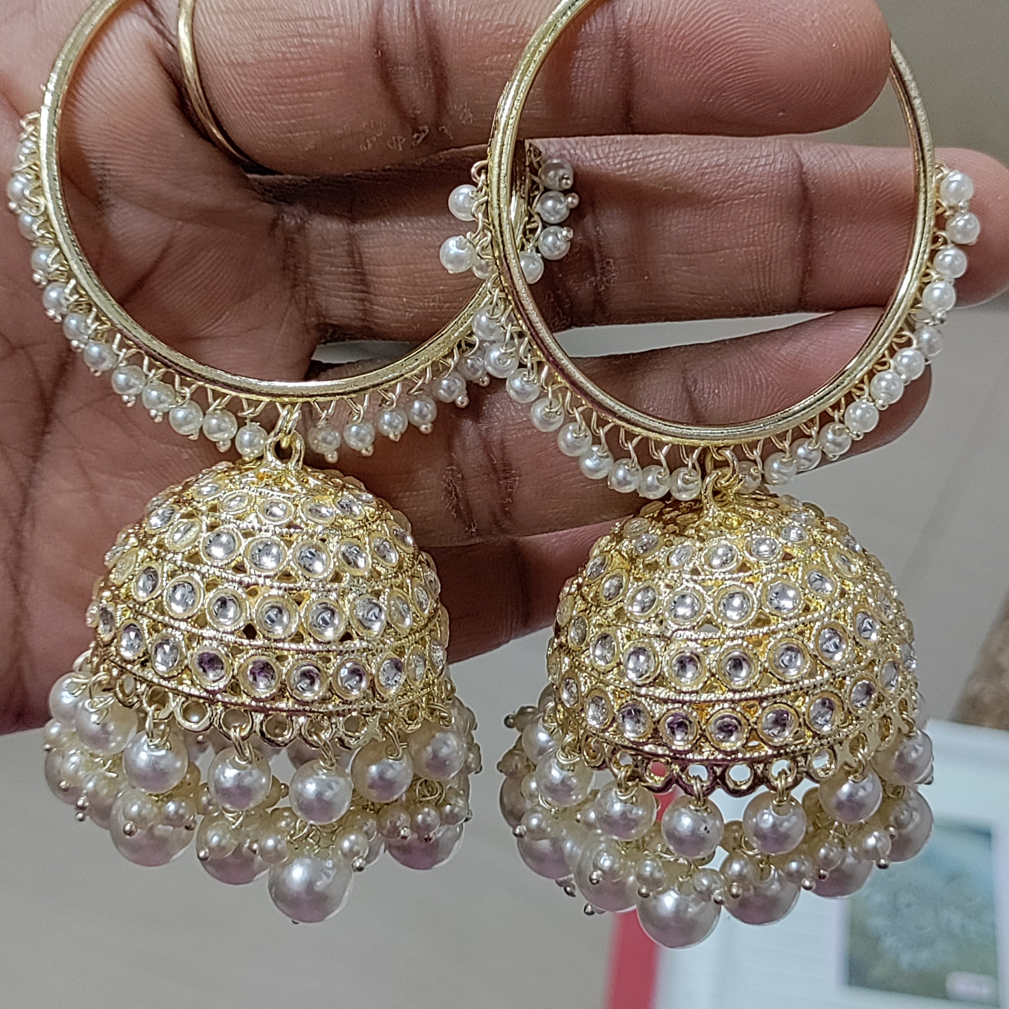 Golden kundan Hoop Bali Sku 2106 E3