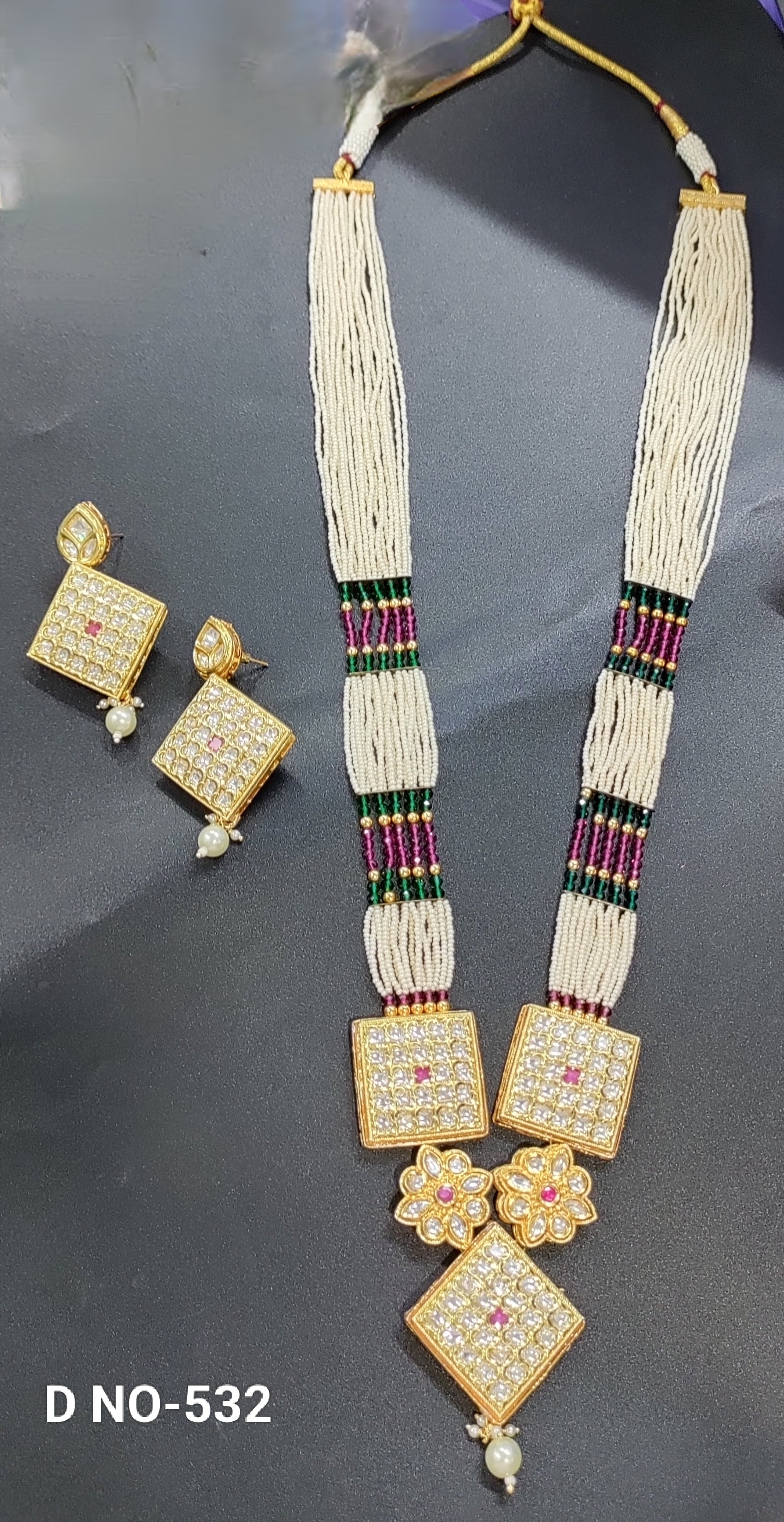 Golden Kundan Long Pearl Necklace SKU-532 D-4