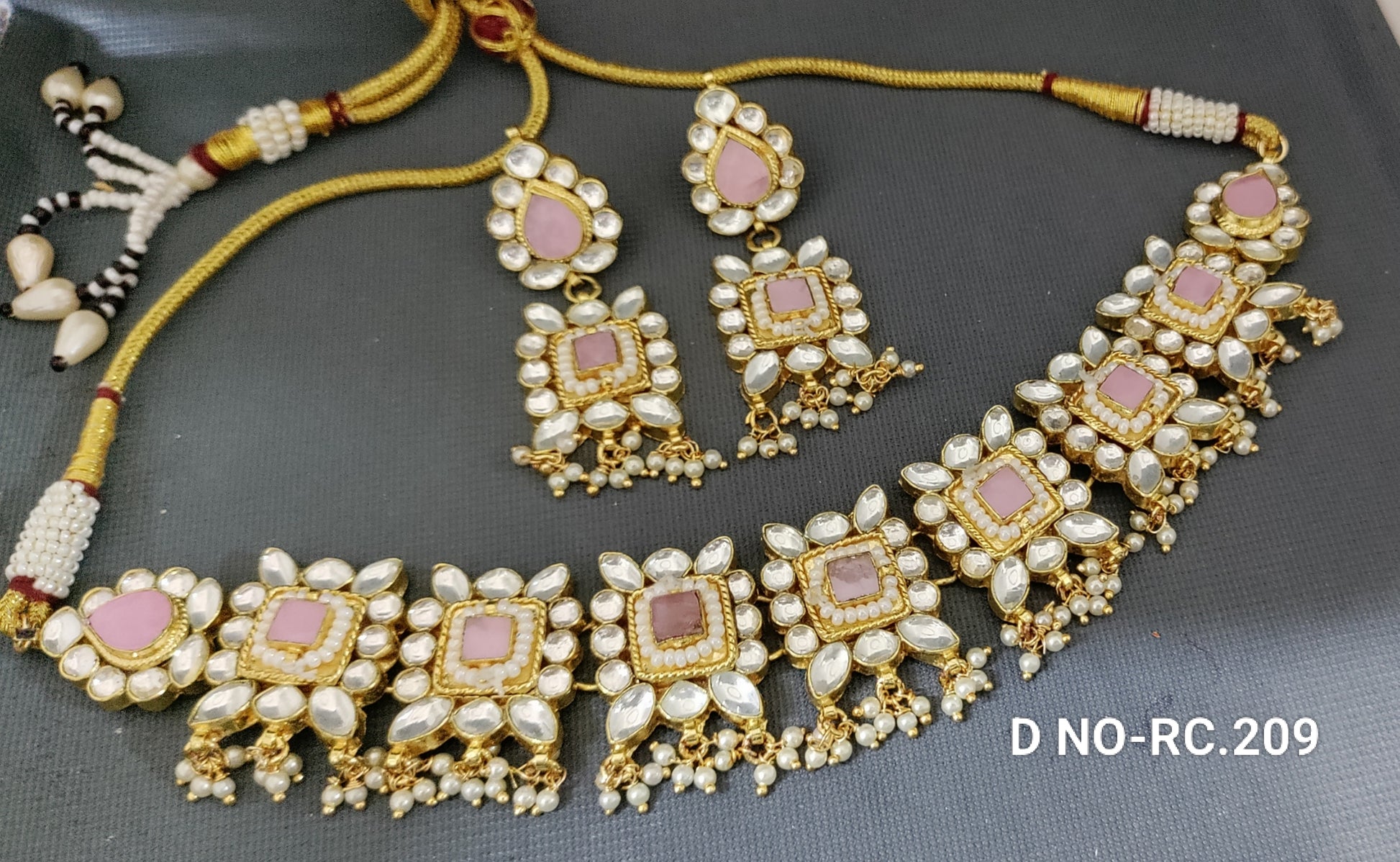 Elevate your ensemble with the Golden Kundan Necklace SKU-RC.207 expertly crafted to showcase traditional artistry. Featuring meticulously set Kundan stones in a radiant gold finish, this necklace offers a timeless appeal that enhances formal and festive attire alike.