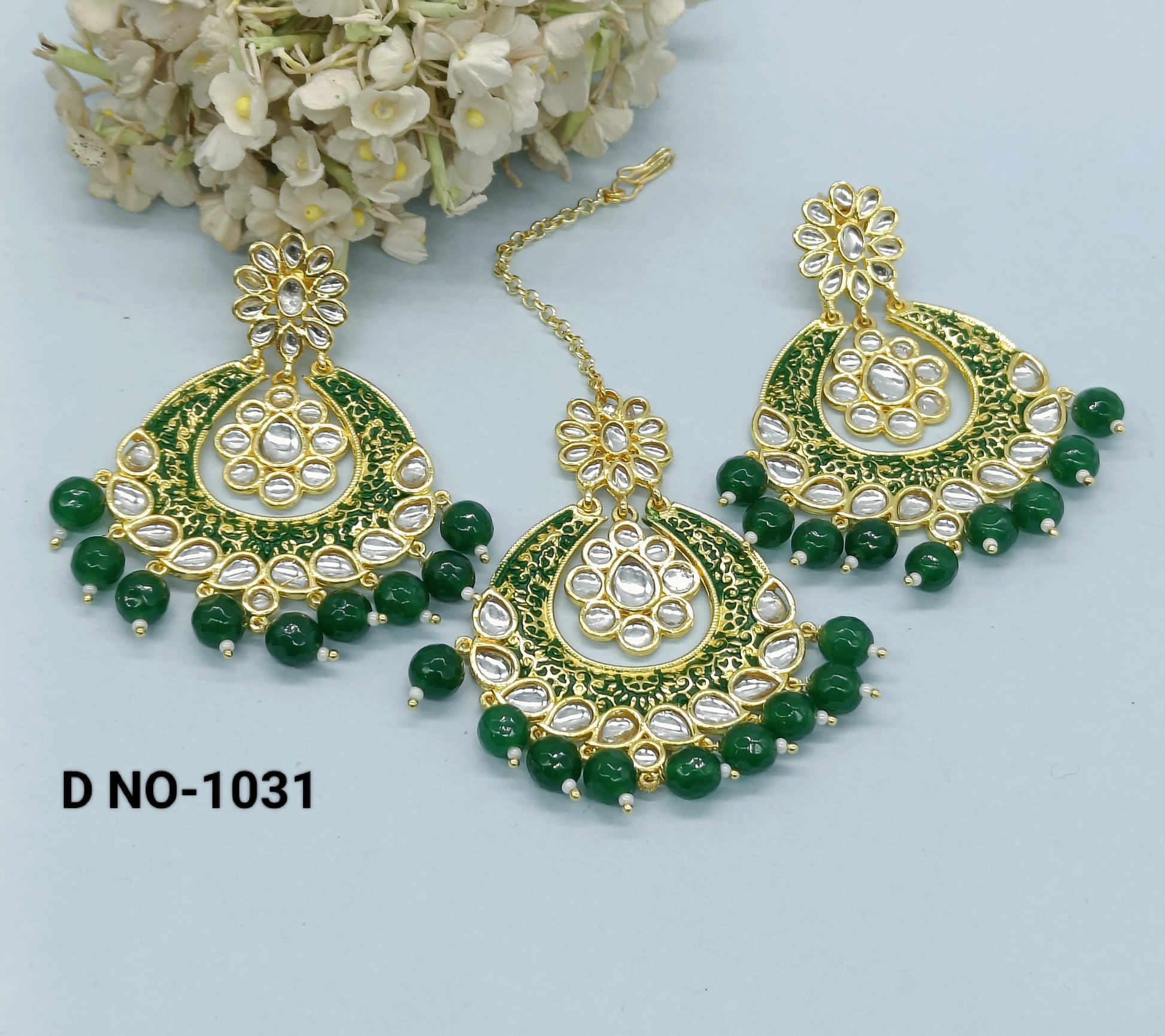 Golden Minakari Kundan Earring Sku 1031 D-3