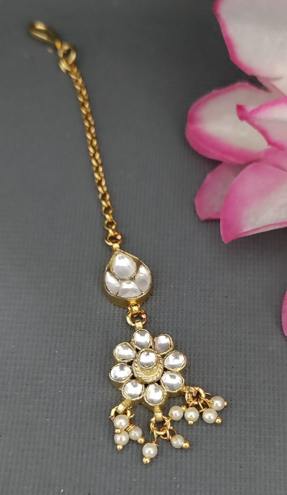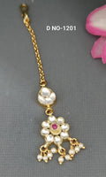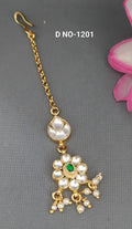 Elevate your traditional look with the Golden Pachi Kundan Tika, featuring intricate handcrafted detailing that adds a regal touch to any ensemble. Designed for comfort and elegance, this tika perfectly complements ethnic wear, making it ideal for weddings and festive occasions. Its lustrous finish and precise craftsmanship ensure a