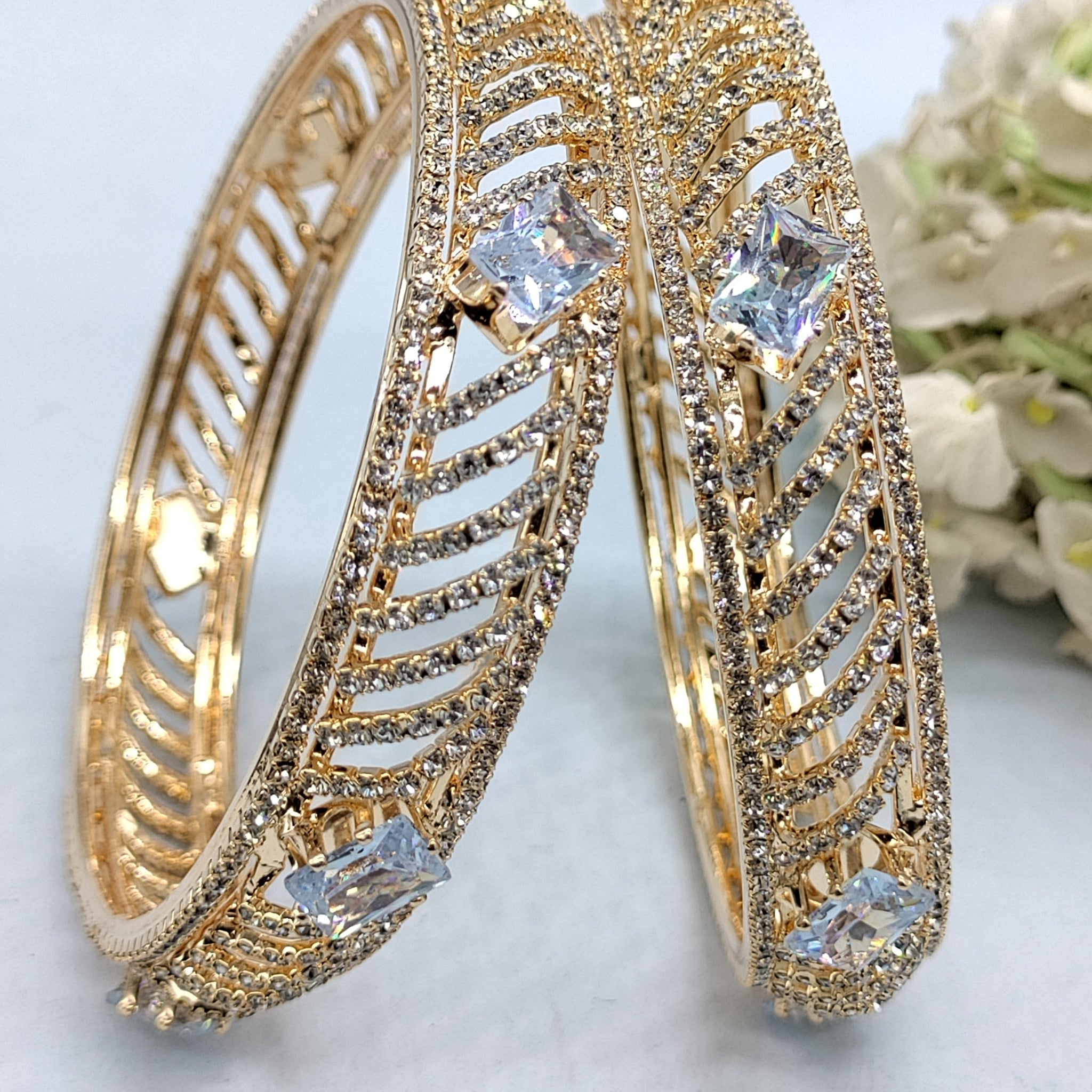The Golden Stone Bangle SKU-6085 is a stunning addition to any jewelry collection. Made with high-quality stones, this bangle exudes elegance and sophistication. Its timeless design and durable construction make it the perfect accessory for any occasion.