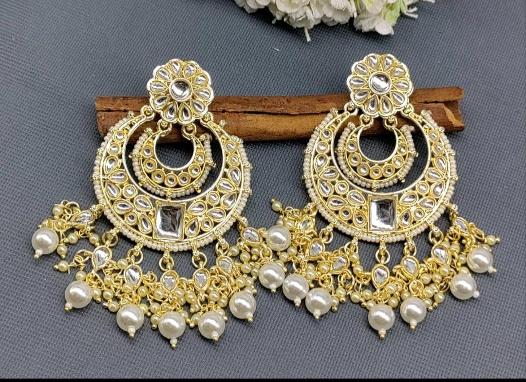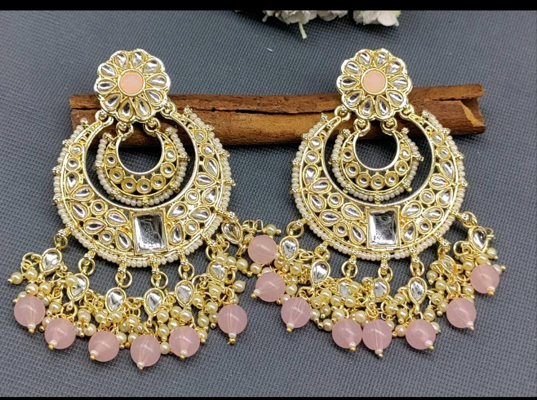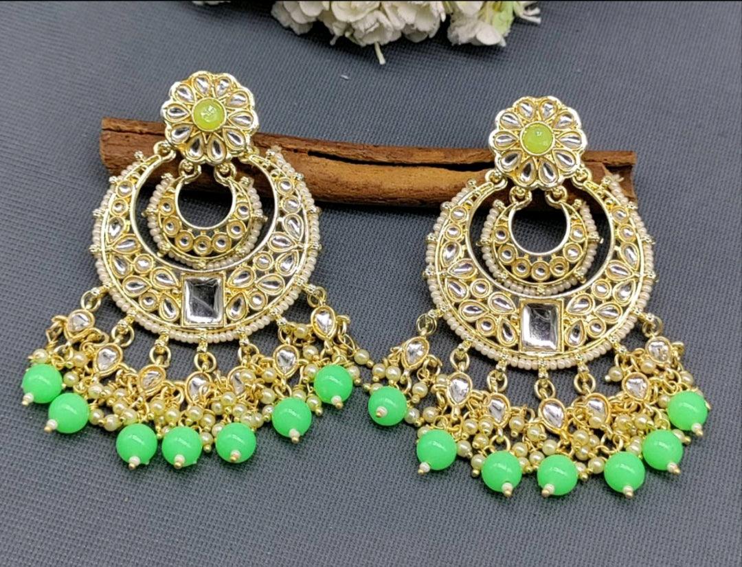 Beautiful Kundan jewellery in golden finish with Kundan with beads stones to make these exquisite Earring really special – light in weight & can be paired with almost any outfit perfect accessory for every occasions party & wedding.