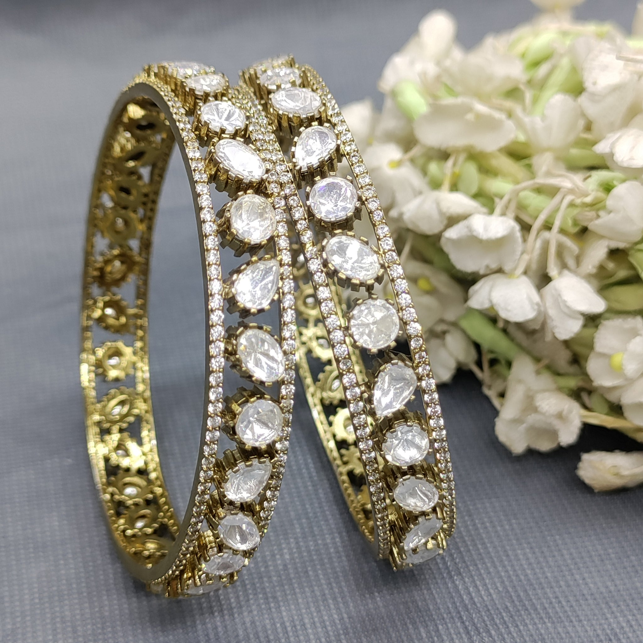 Enhance your traditional look with our Kundan Mehandi bangles. These handcrafted bangles add a touch of elegance and charm to your outfit. With intricate designs and superior quality, these bangles are the perfect statement piece for any occasion. Experience the beauty of Indian culture with Kundan Mehandi bangles.