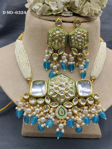 pearl kundan necklace set-6324