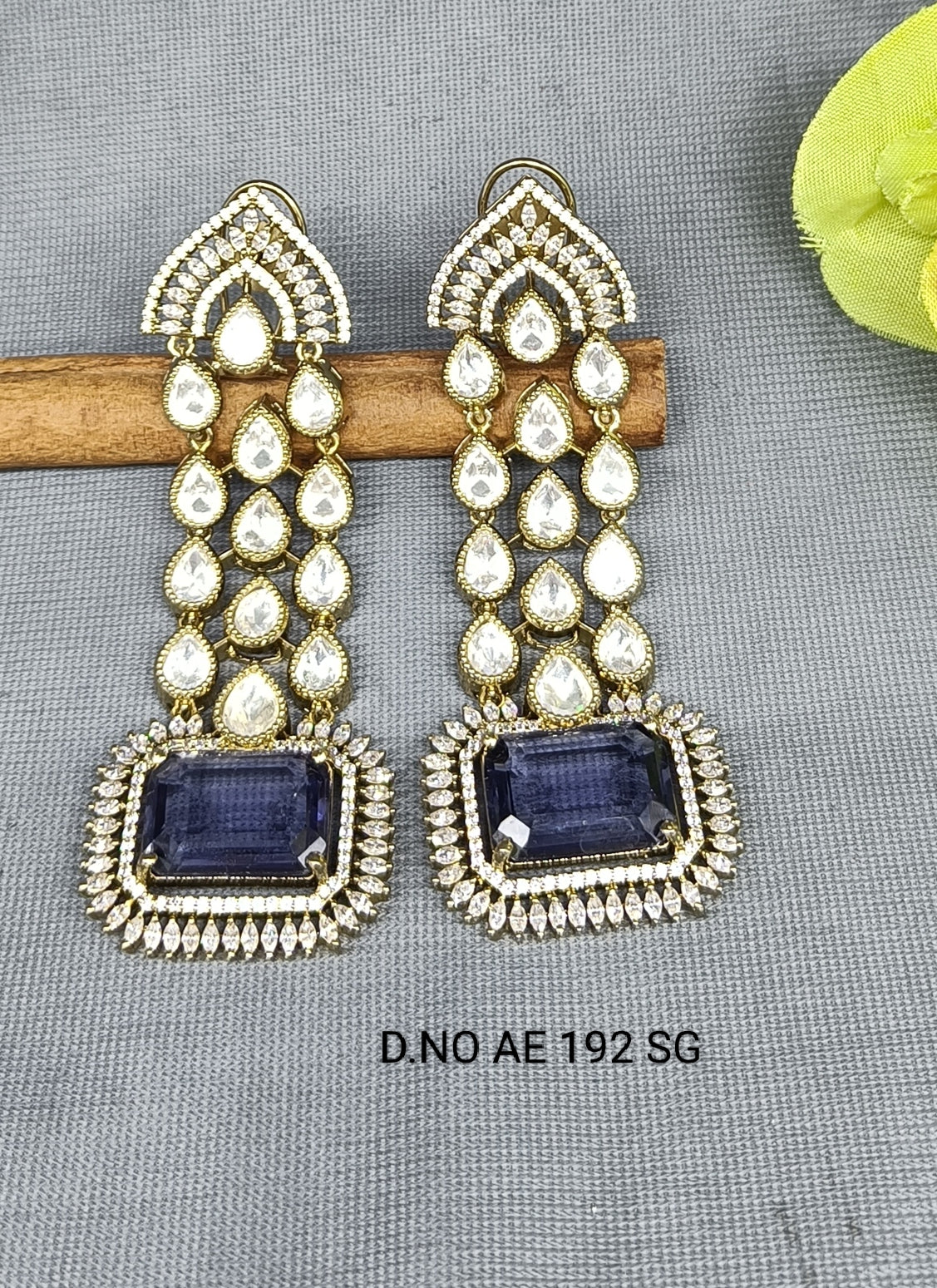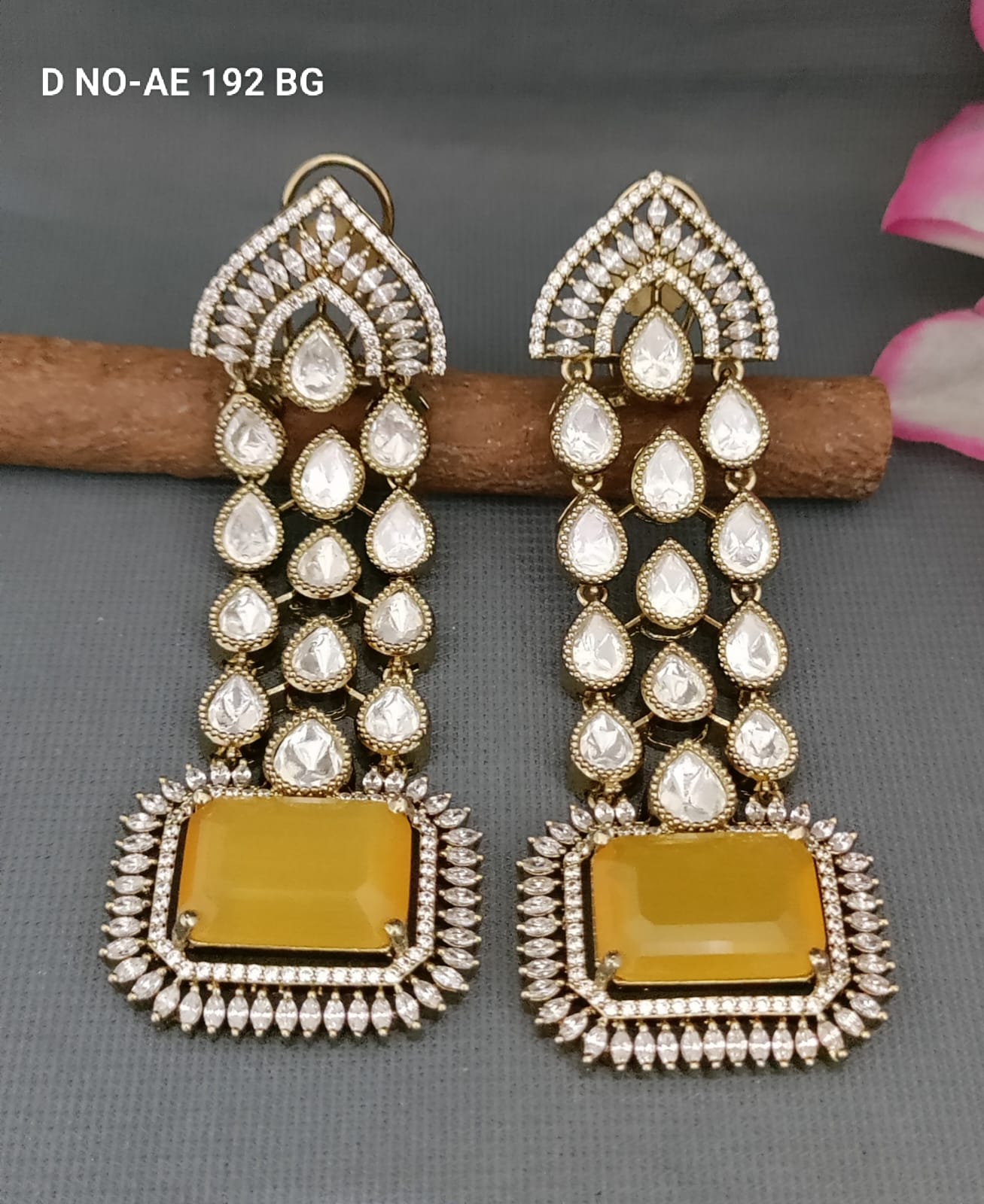 Mehandi CZ Mossinaite kundan Earring SKU-AE 192 BG/C-9