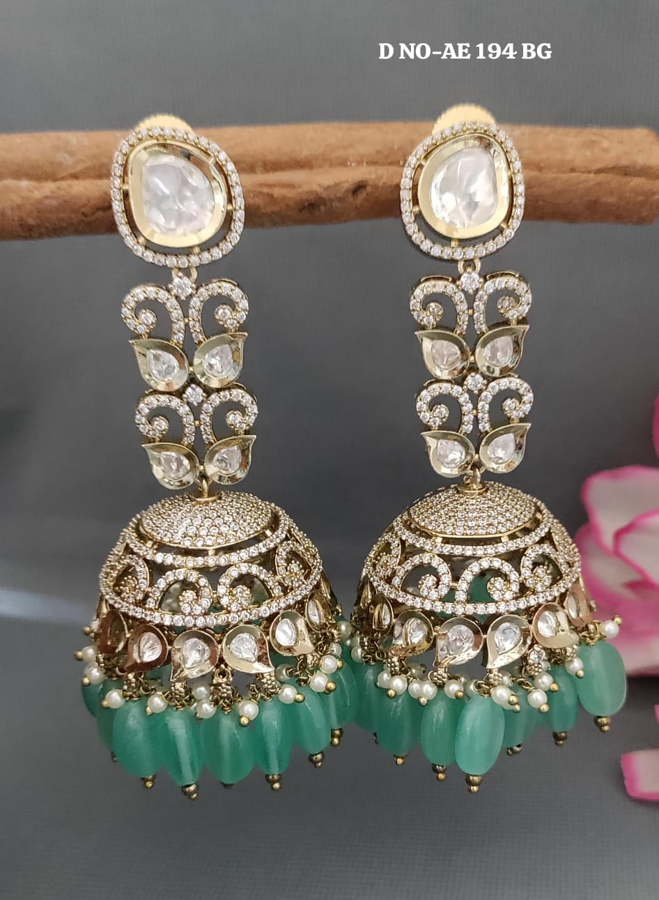 Mehandi CZ Mossinaite kundan Zhumki Earring SKU-AE 194 BG/C-9