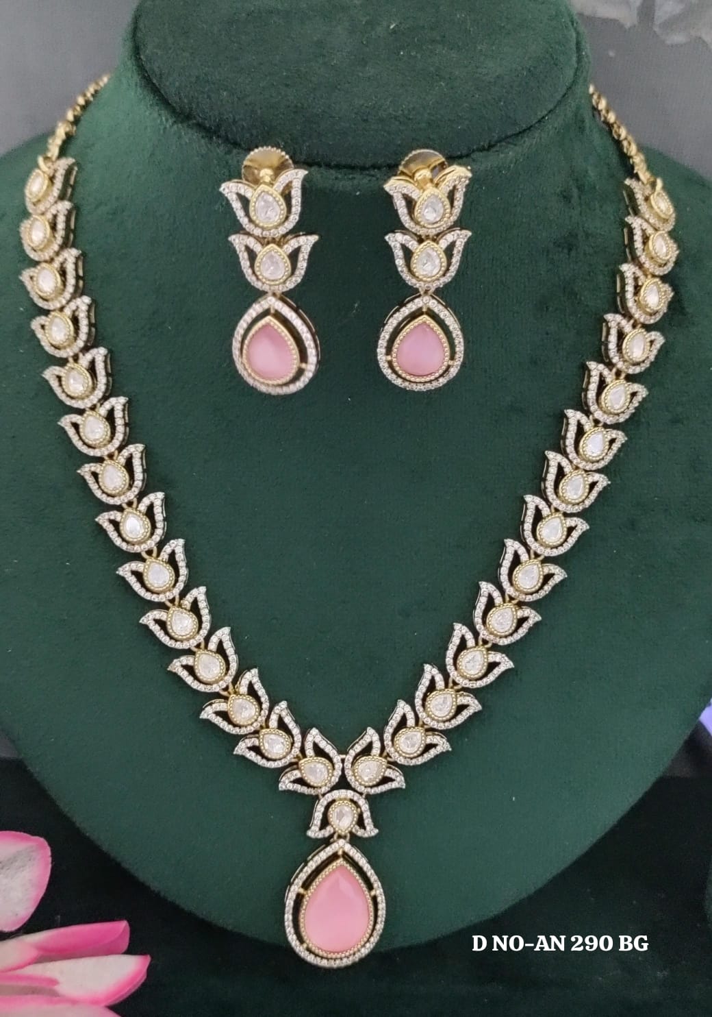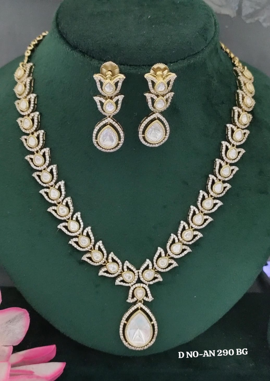 Mehandi CZ Mossinaite kundan Necklace sku AN 290 BG/D-4
