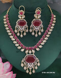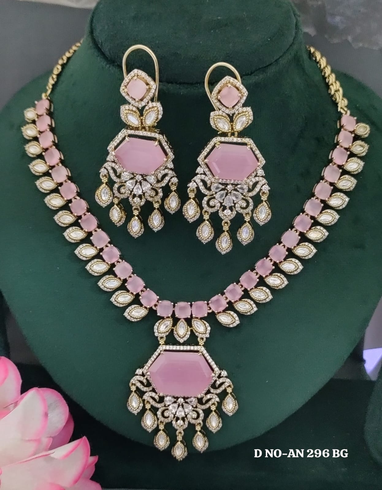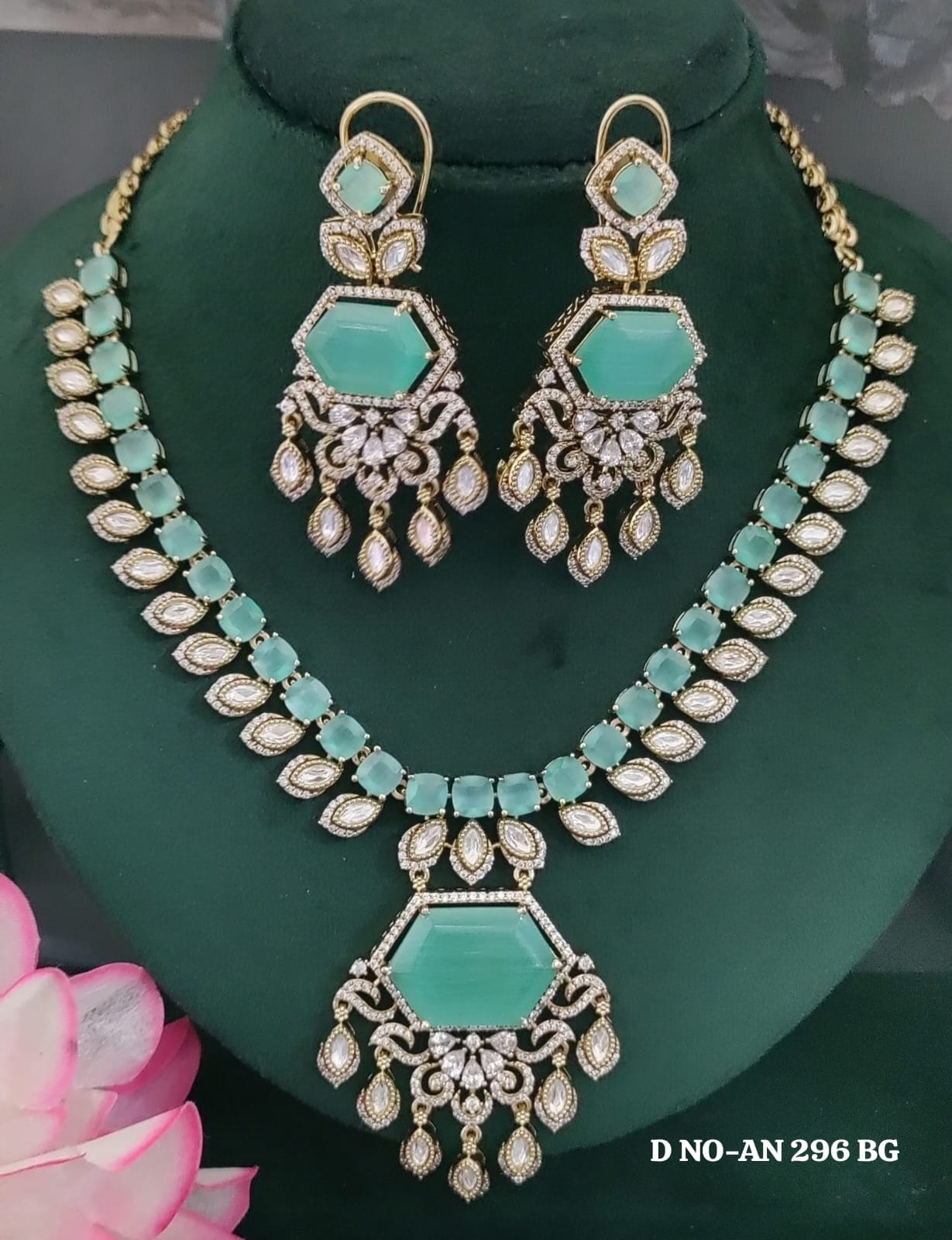 Mehandi CZ Mossinaite kundan Necklace sku AN 296 BG/D-4