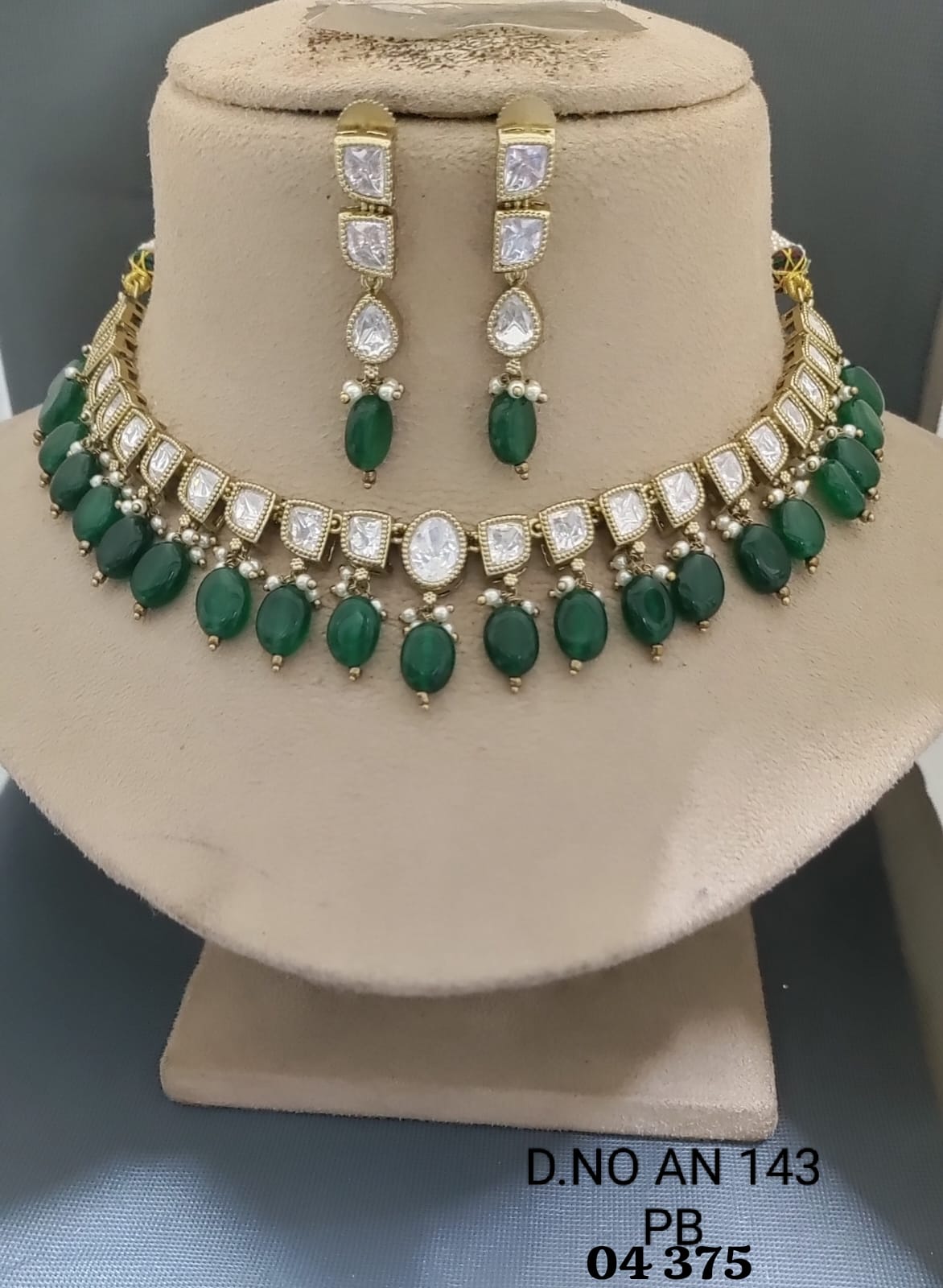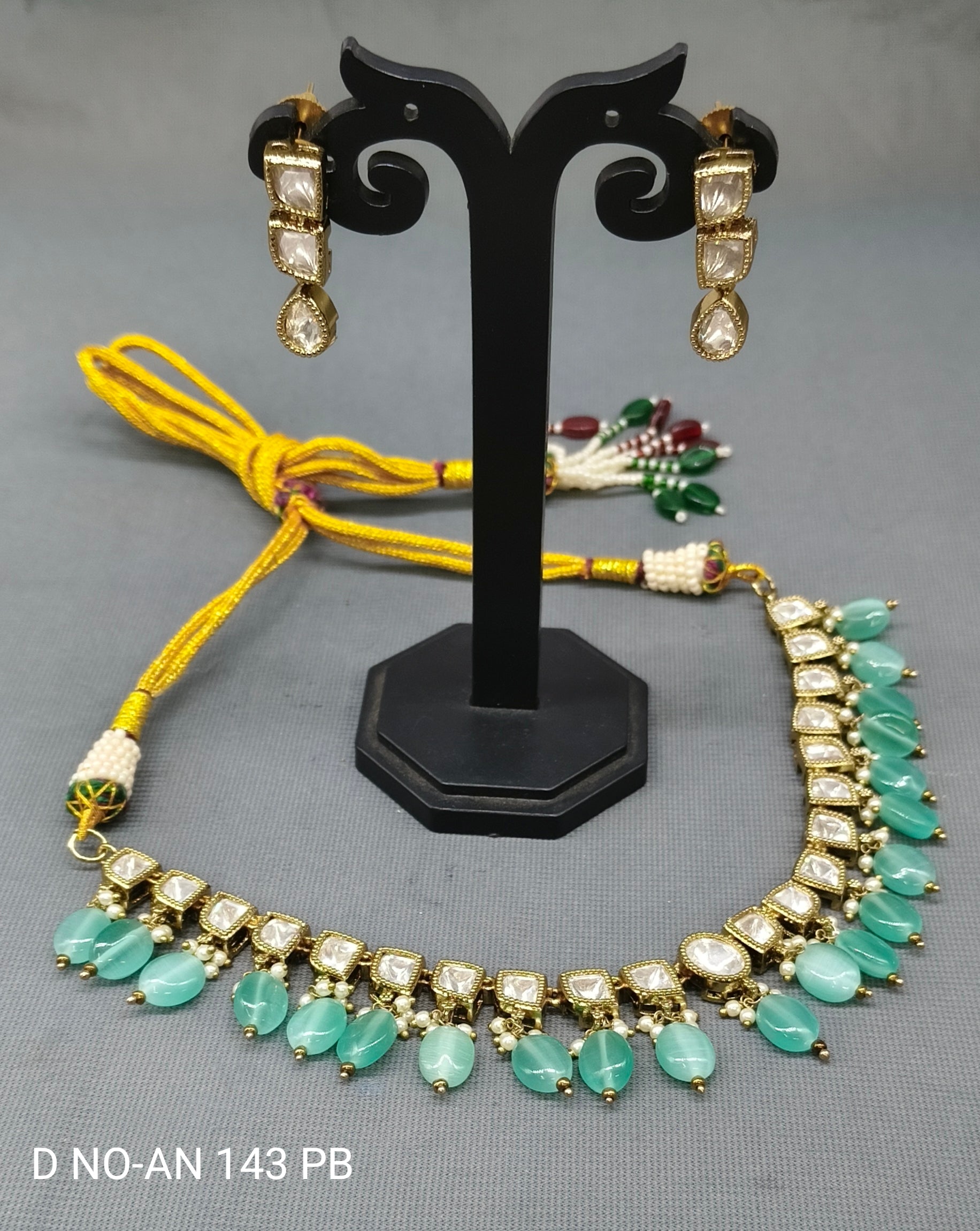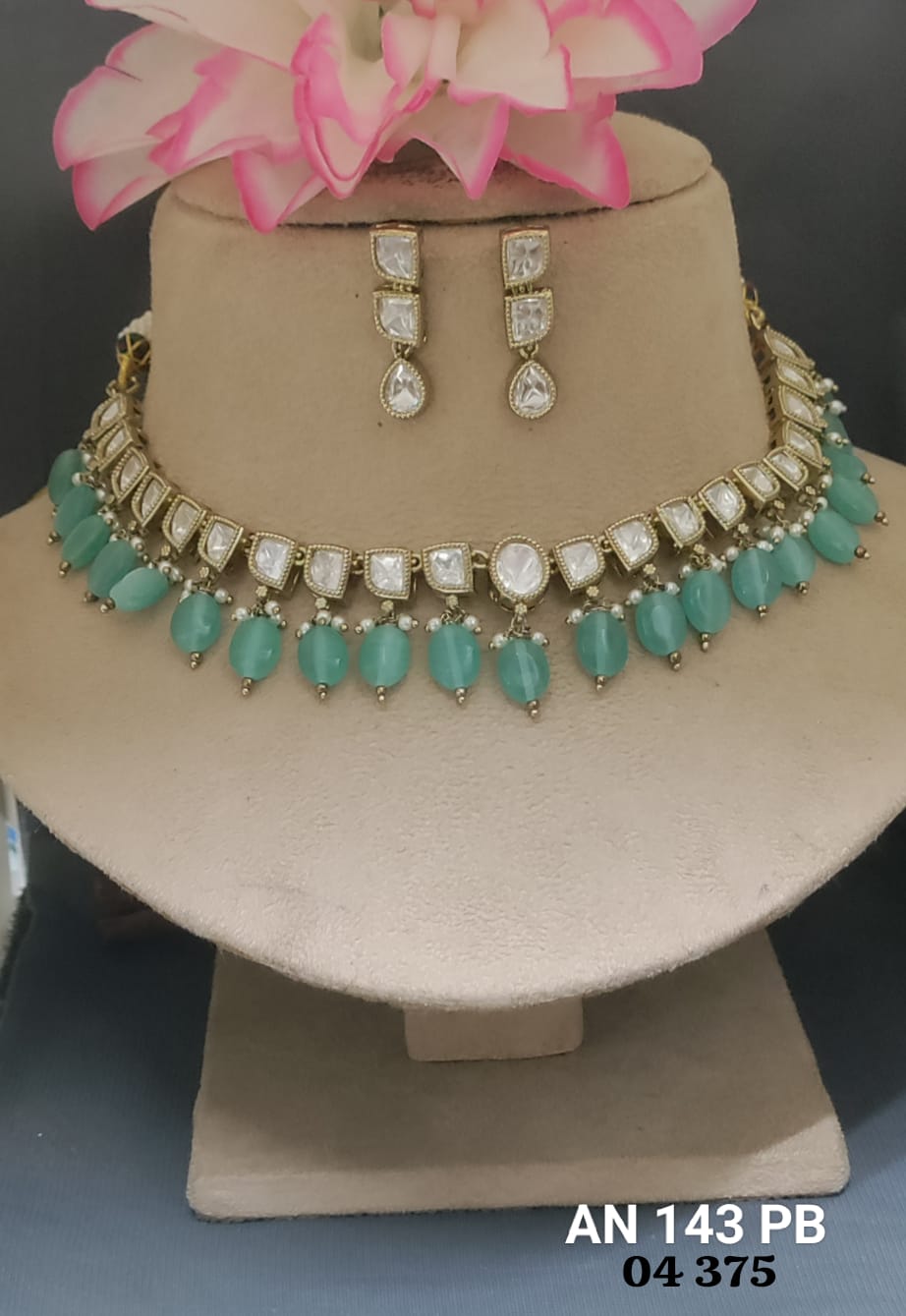 Mehandi Moissanite Kundan Necklace Set Sku AN 143 PB D4
