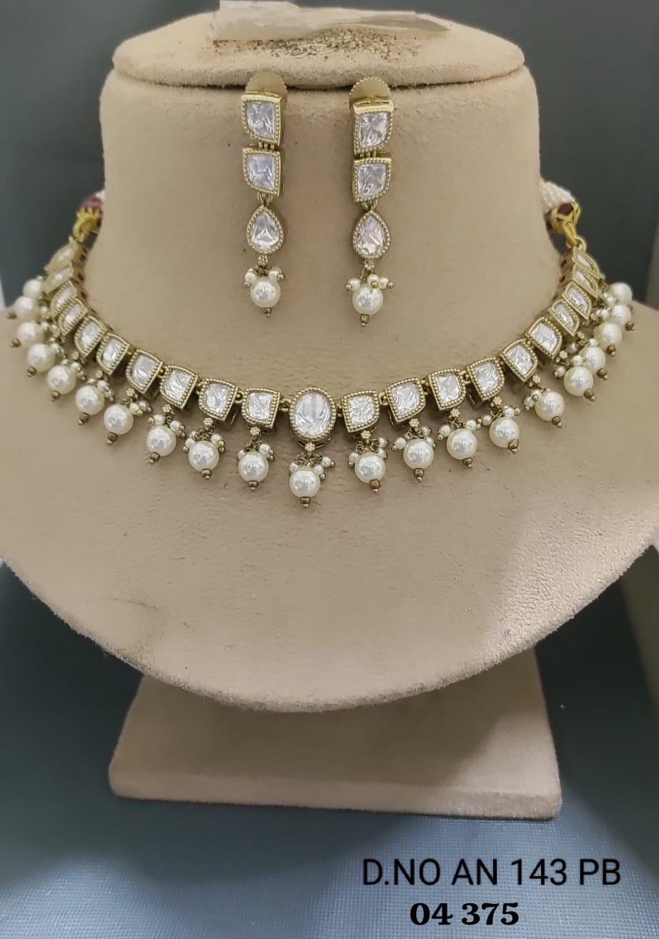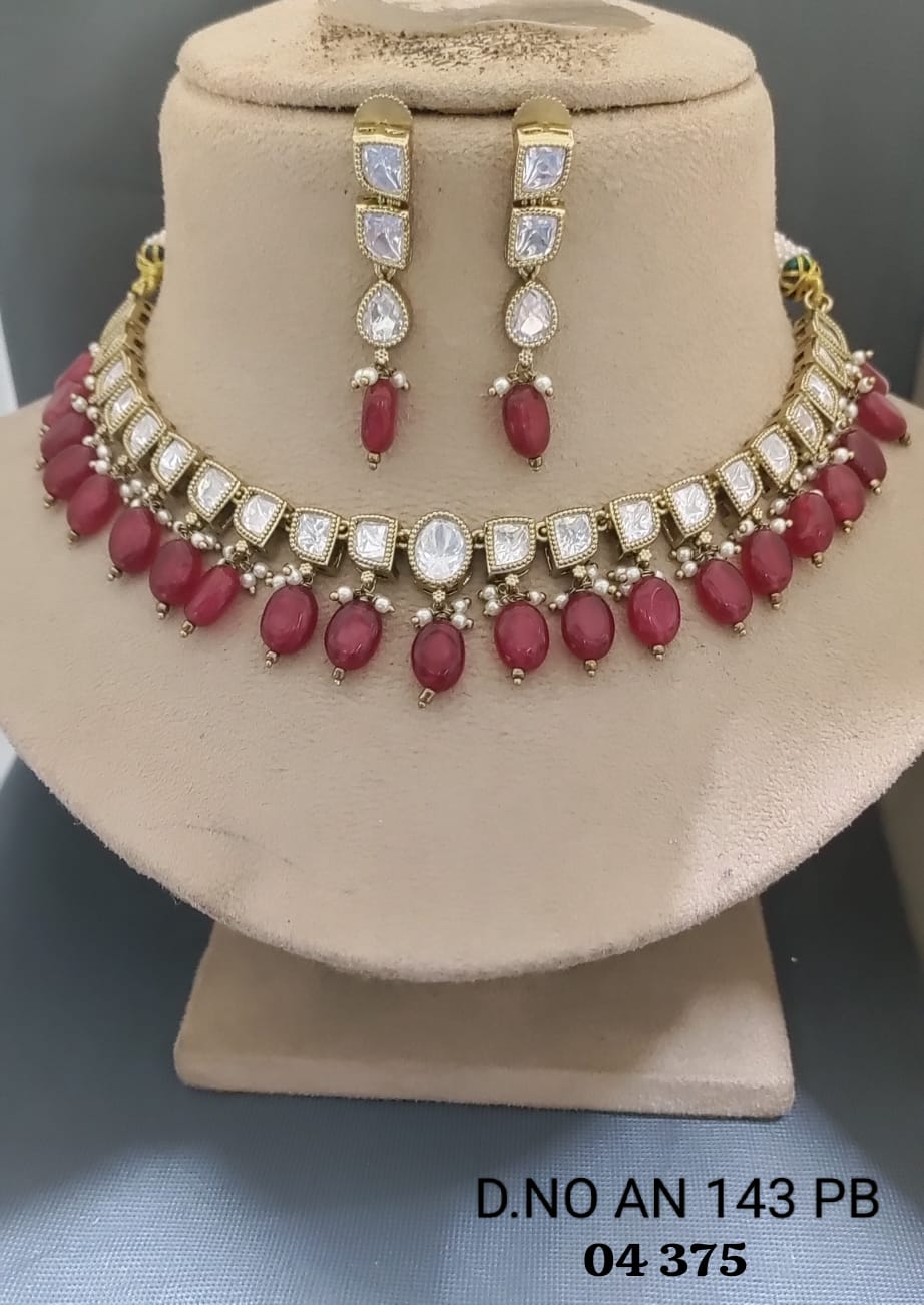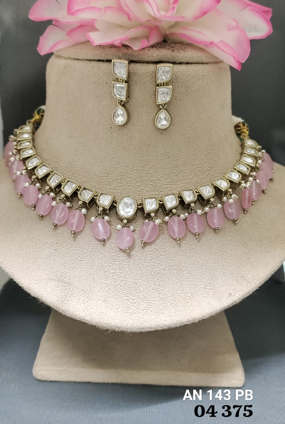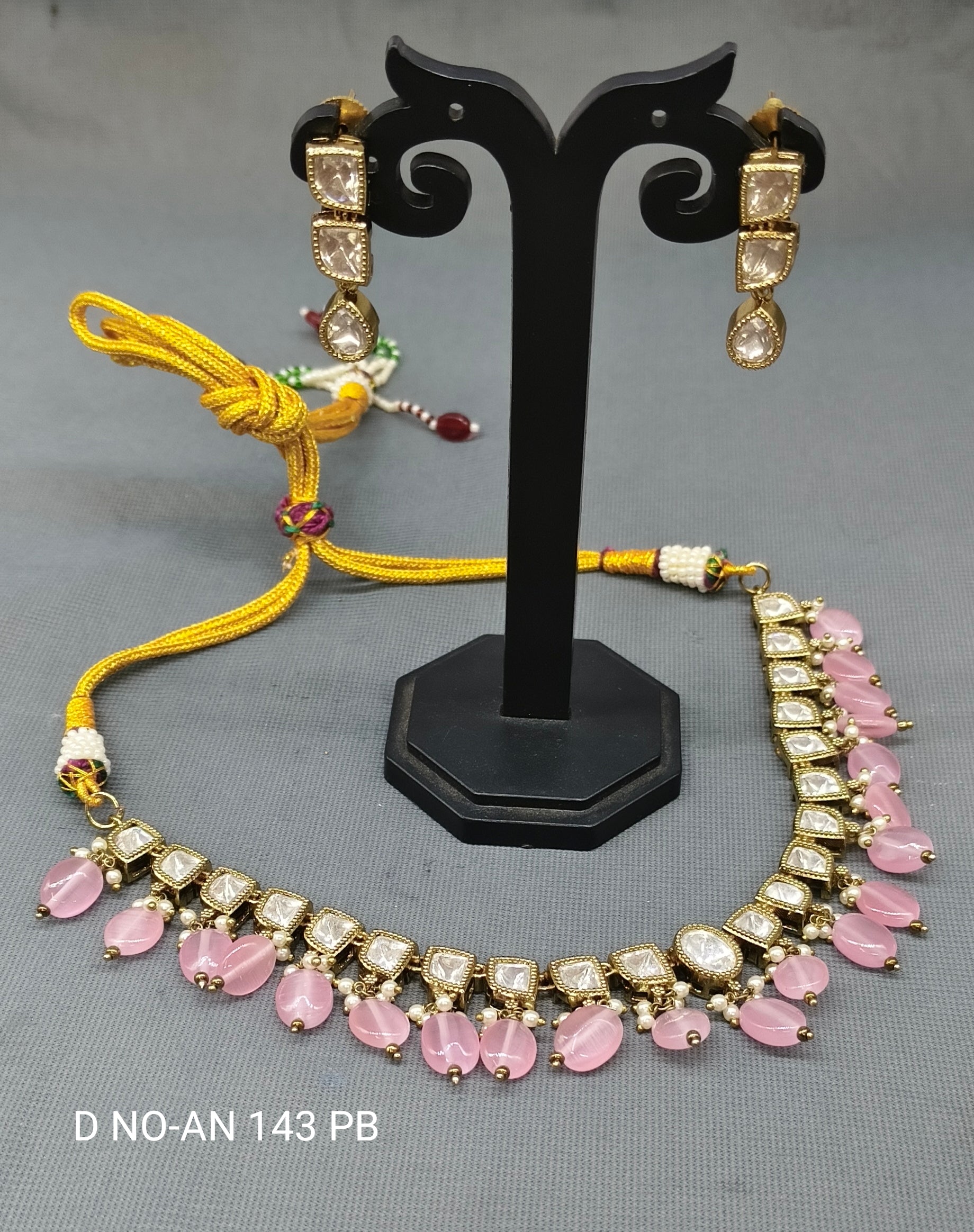 Mehandi Moissanite Kundan Necklace Set Sku AN 143 PB D4