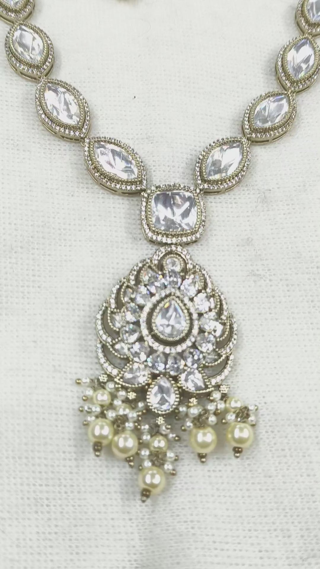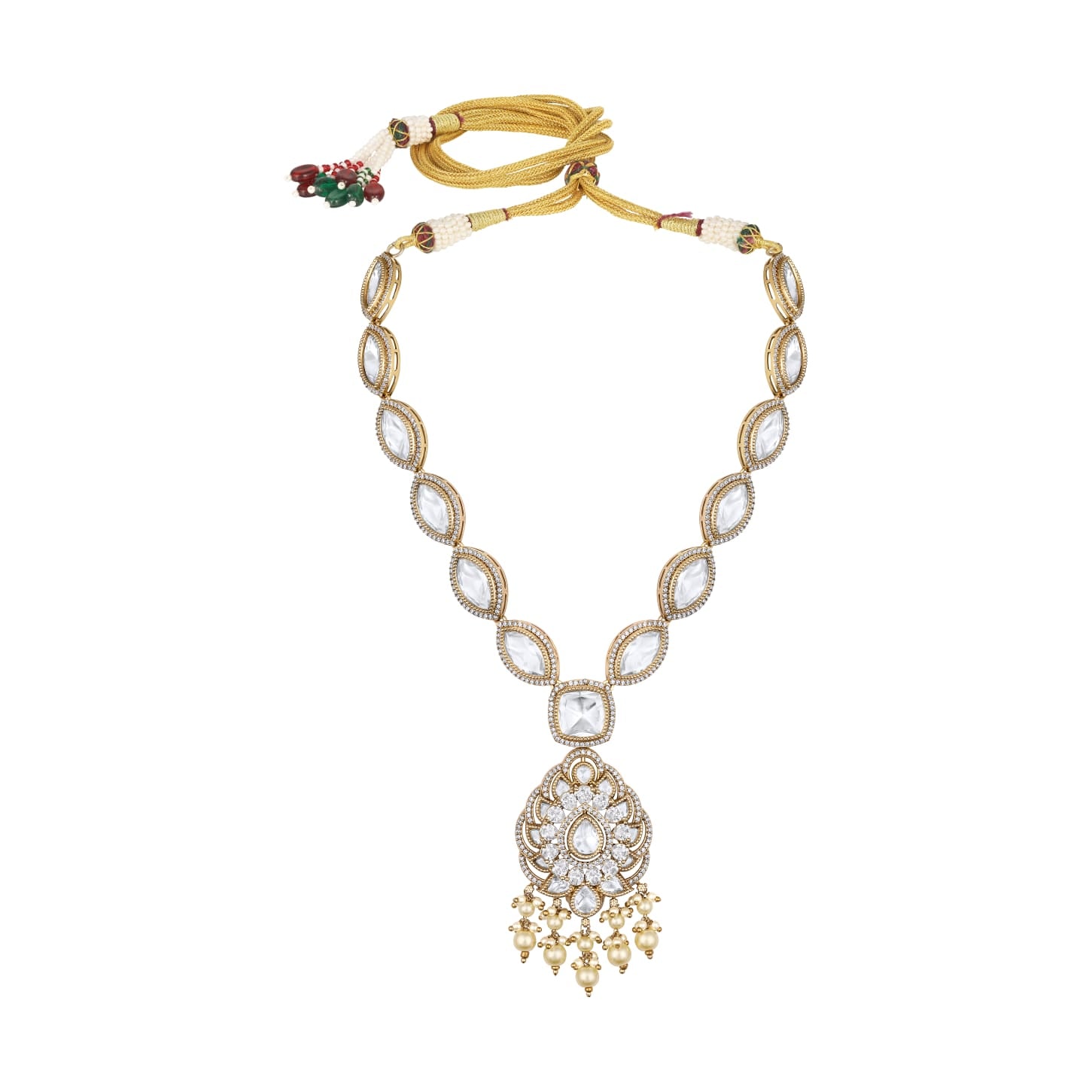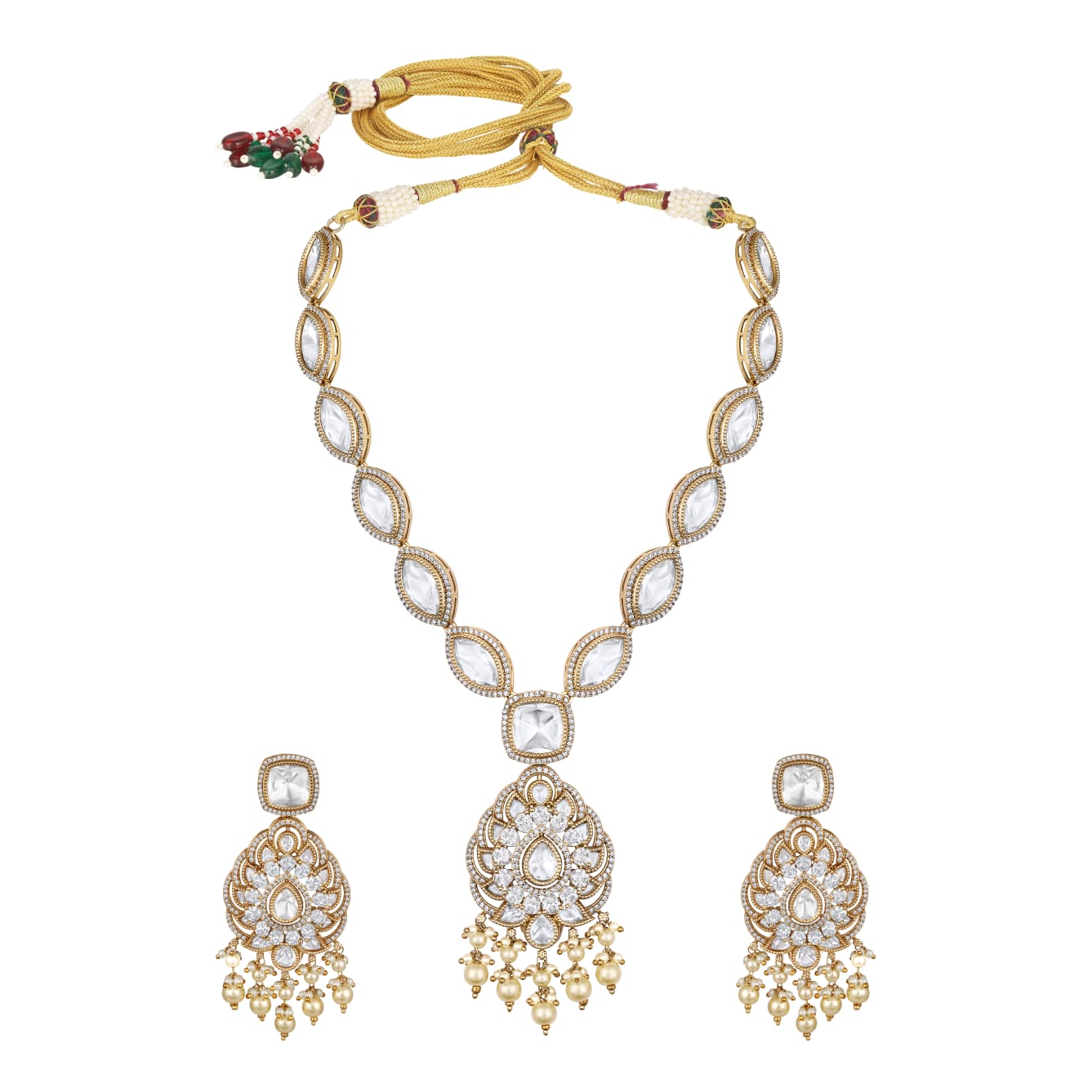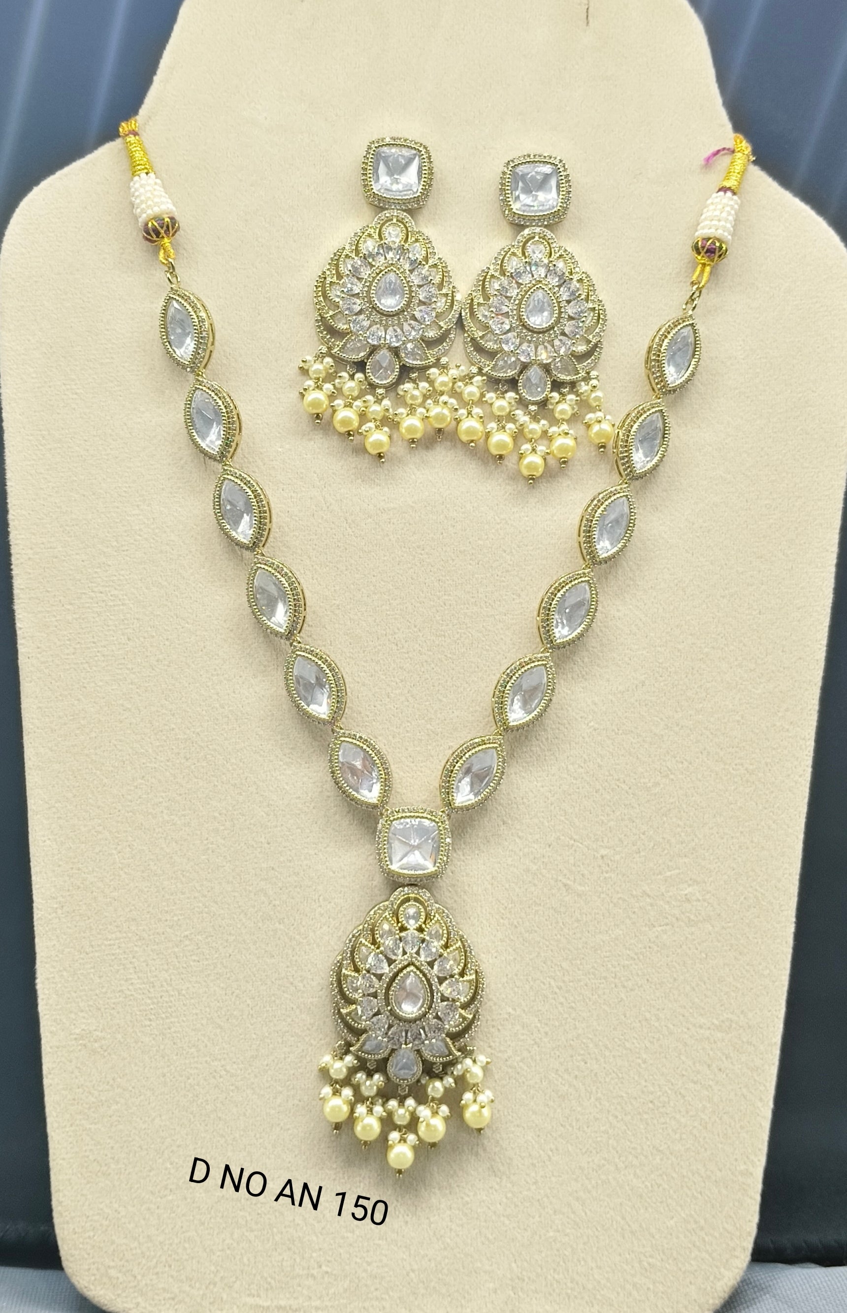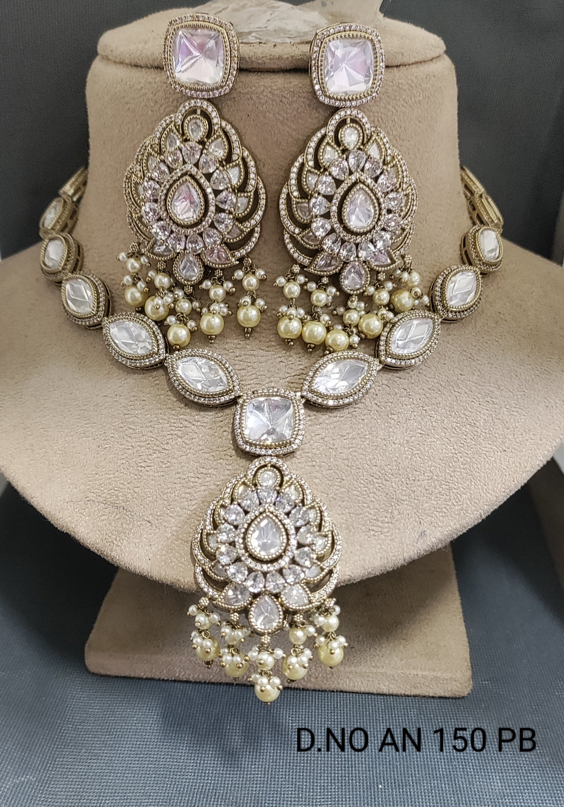 Mehandi Moissanite Kundan Necklace Set Sku AN 150 PB D-4