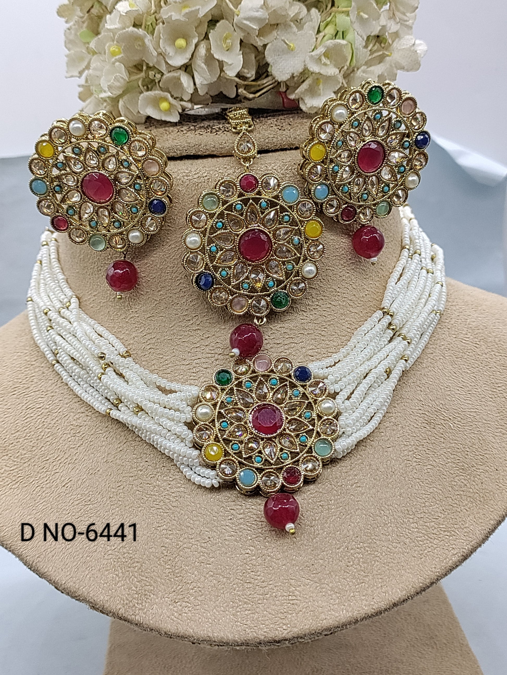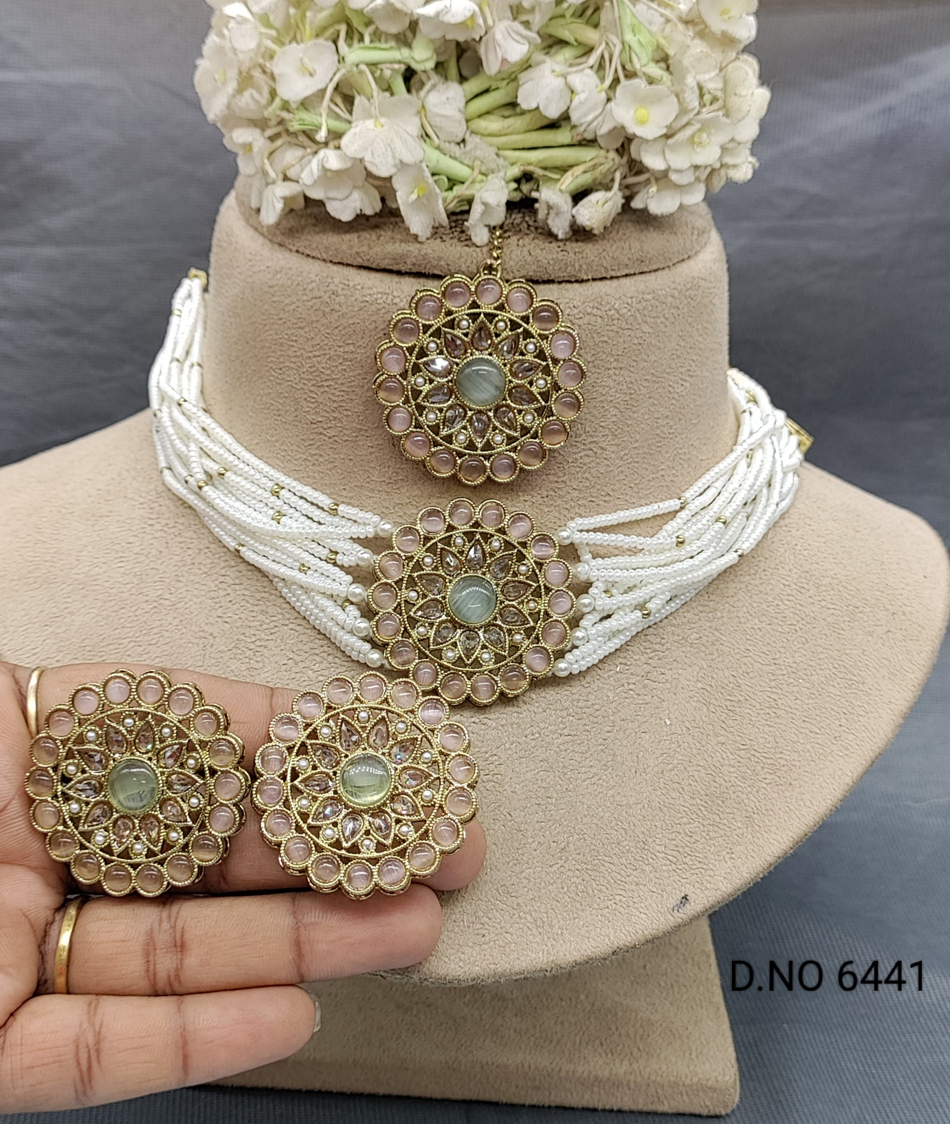 Mehandi Polki Choker Necklace SKU-6441 B/8