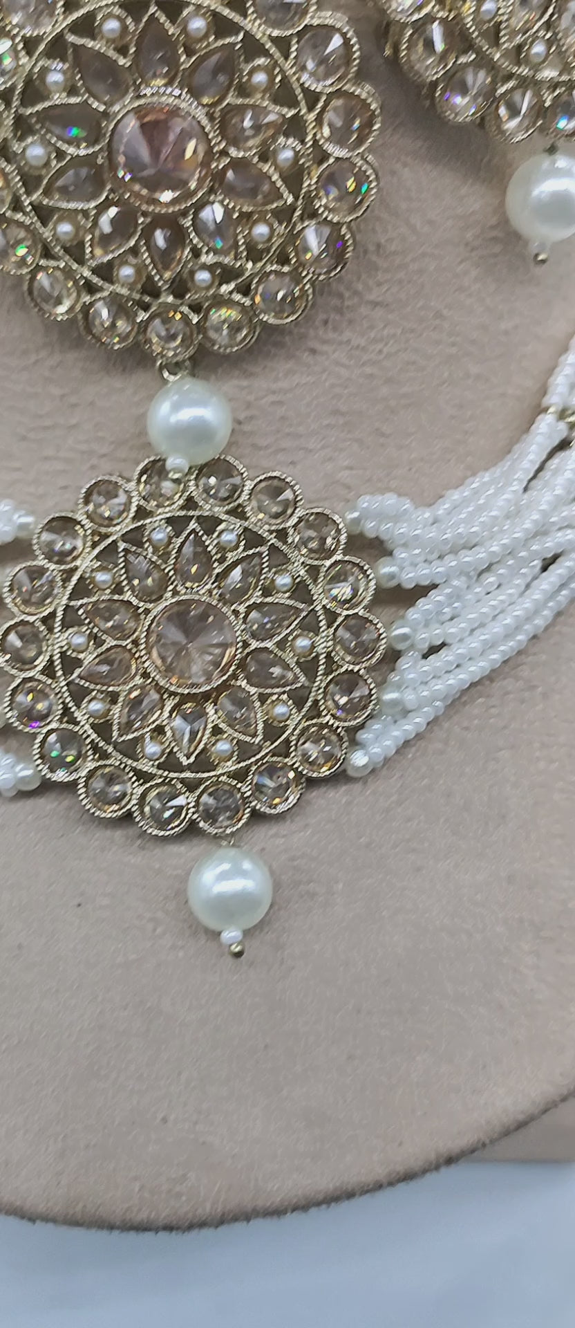 Mehandi Polki Choker Necklace SKU-6441 is a stunning choker set that adds a touch of elegance to any outfit. The intricate details of the Polki design are expertly crafted and showcase the finest Mehandi artistry. Elevate your style with this one-of-a-kind necklace.