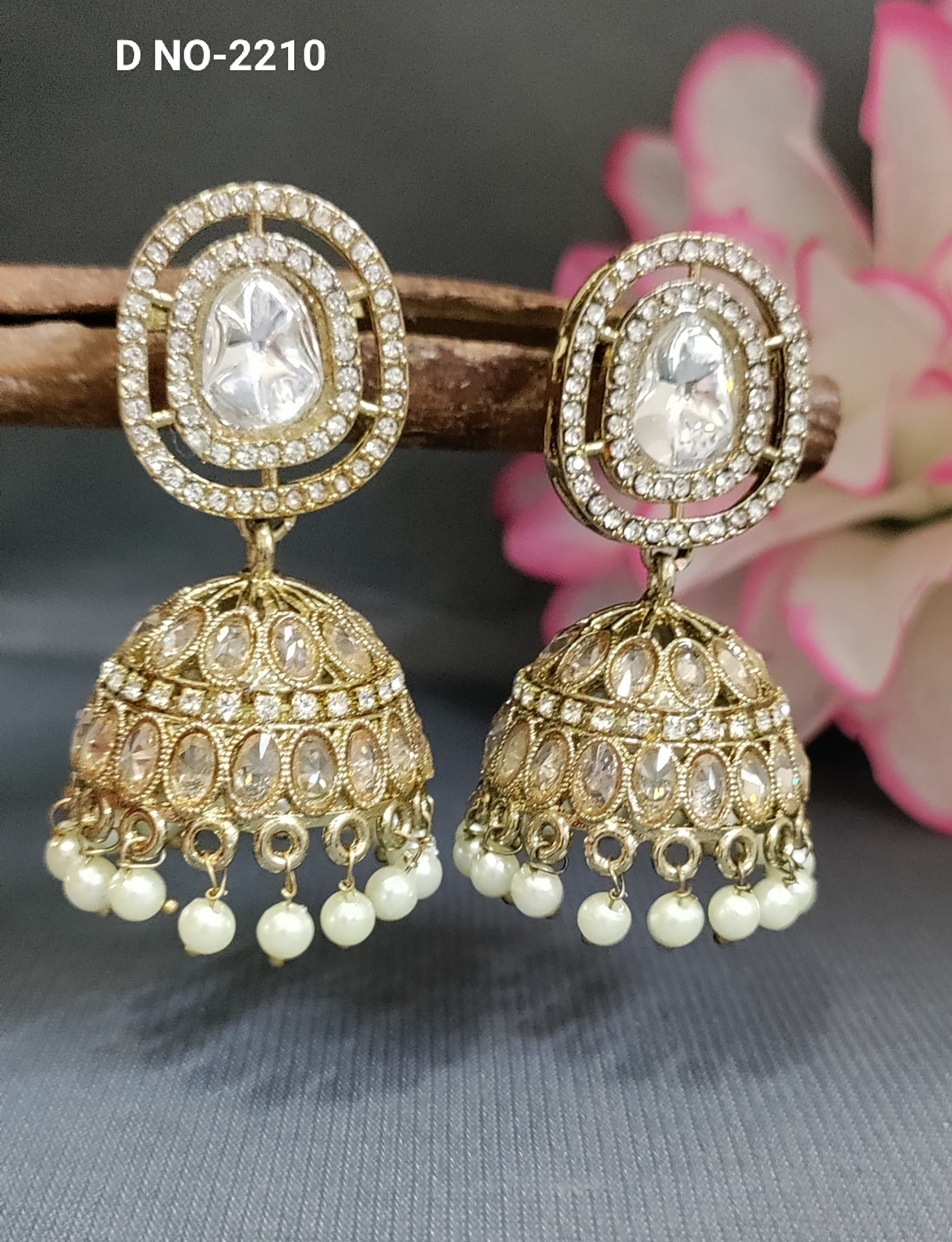 Moissanite Mehandi Polki Jhumki Earrings Sku 2210 C9