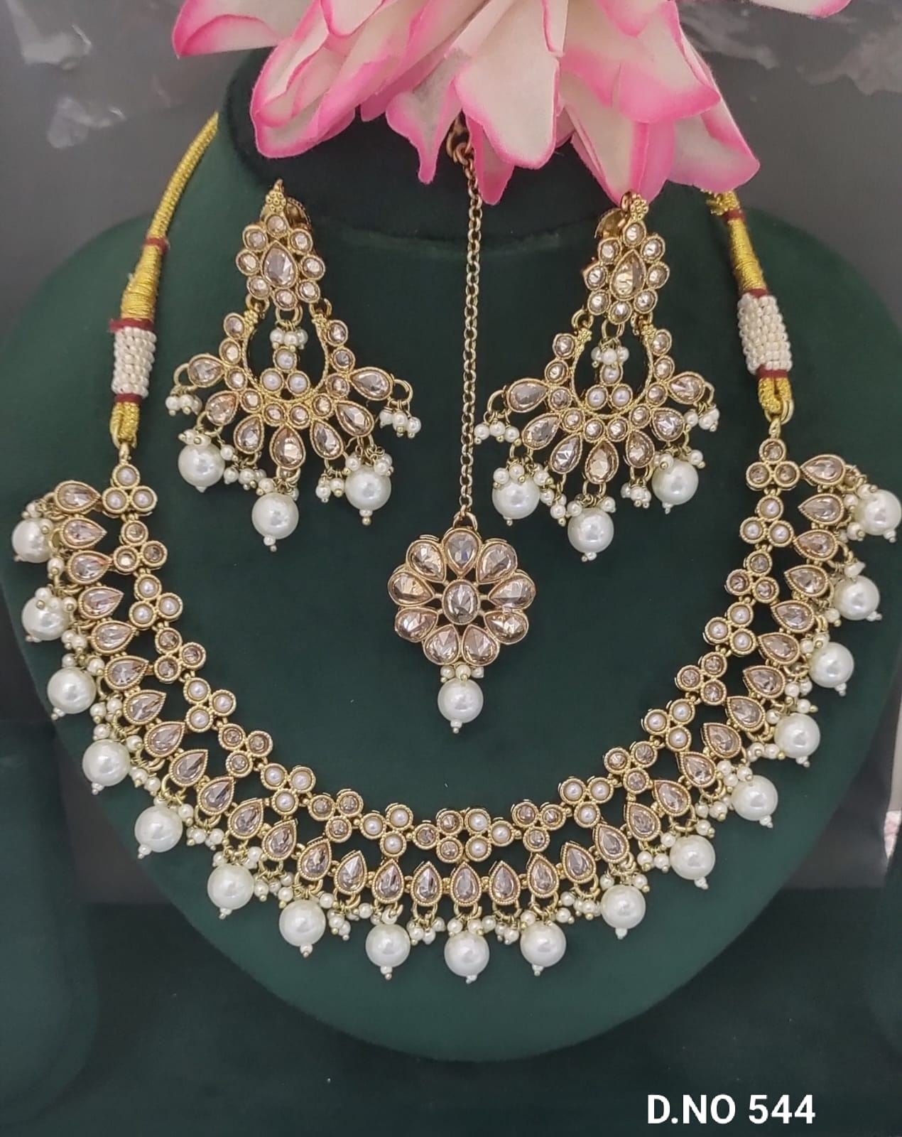 This Mehandi Polki Necklace Set showcases exquisite craftsmanship with traditional Polki stones, reflecting timeless elegance. Designed to enhance festive and bridal attire, the set offers a perfect blend of classic charm and intricate detailing. Its versatile design ensures a graceful look for various occasions, making it a valuable addition to any jewelry collection.