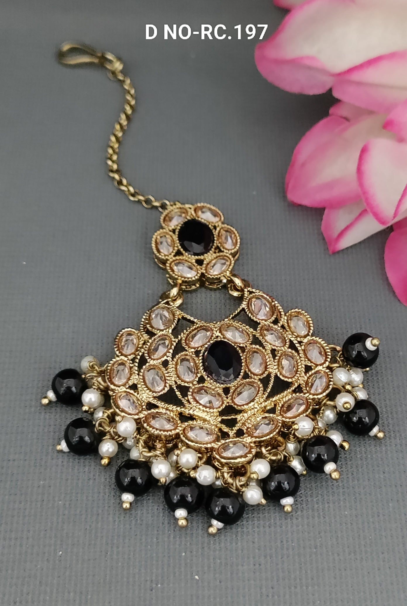 Elevate your traditional look with the Mehandi Polki Tika, designed to complement intricate henna designs with its exquisite craftsmanship. This elegant piece features finely detailed Polki stones set to highlight your festive and bridal attire, adding a touch of classic charm.