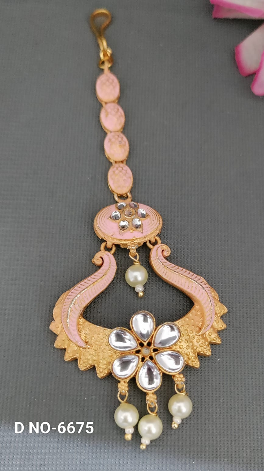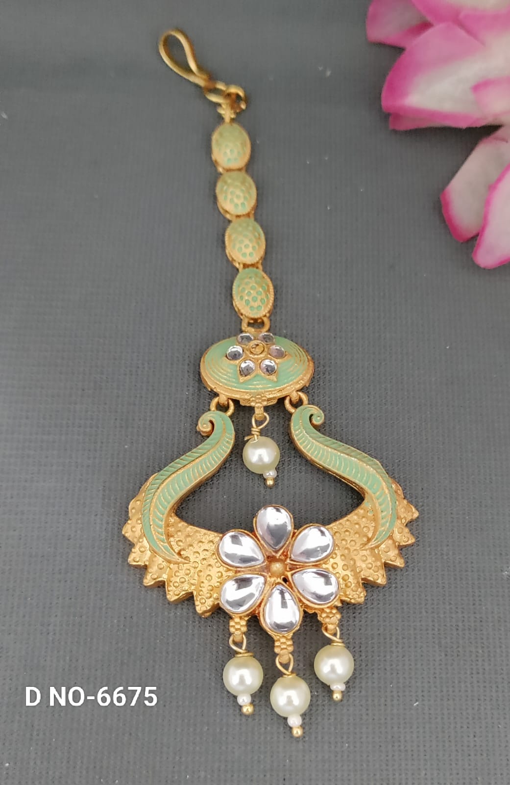 Pacchi Kundan Tikka, expertly crafted to showcase intricate Kundan work that reflects traditional artistry. This exquisite piece offers a perfect blend of elegance and cultural heritage, making it ideal for special occasions. Its meticulous design ensures a sophisticated finish that complements diverse styles, adding a timeless charm to your look.