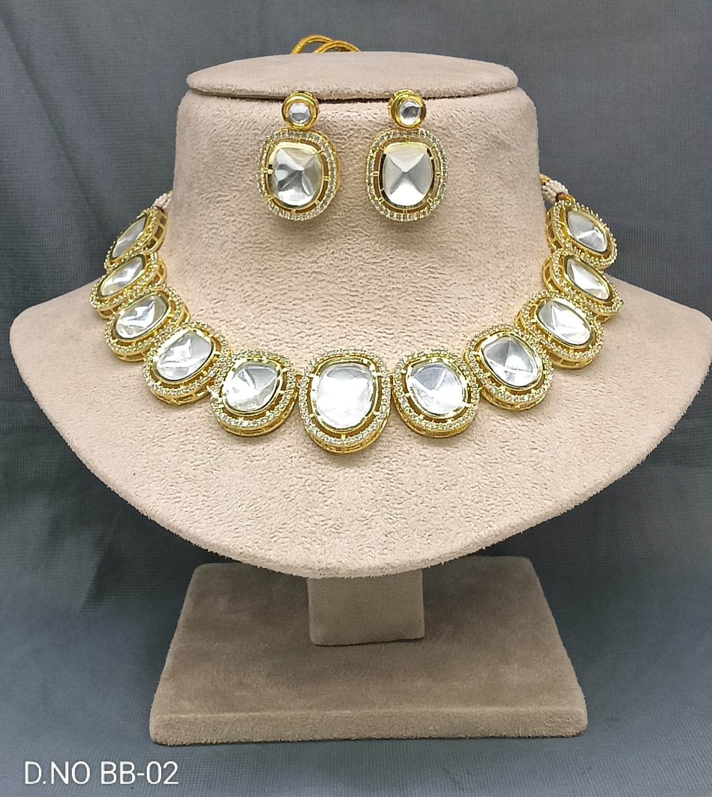 Moissanite Kundan Necklace Set Sku BB-02/D-4