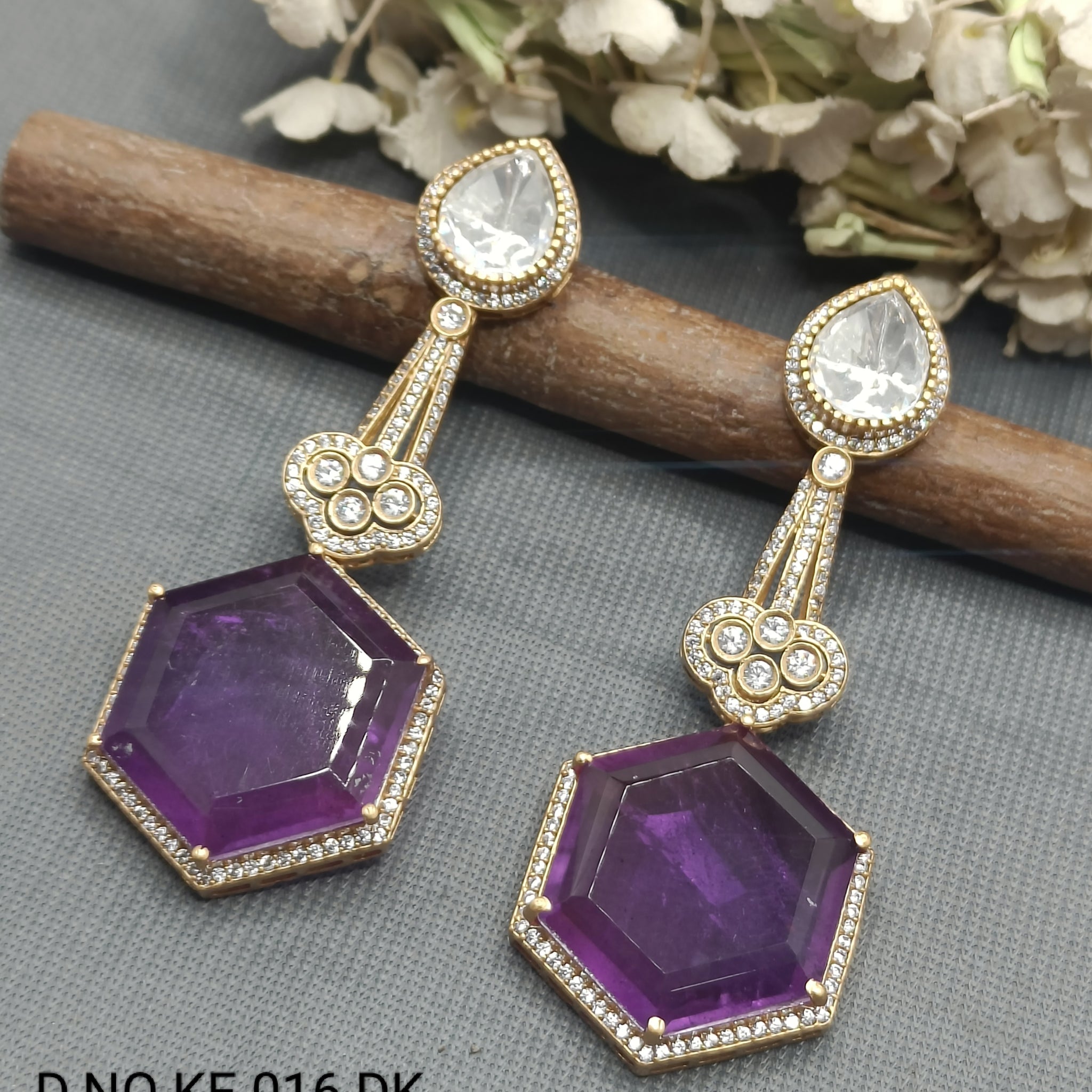 Moissanite Kundan long Earring. These earrings feature elegant Kundan details, adding a touch of sophistication to any outfit. Crafted with high-quality Moissanite. Perfect for any occasion.