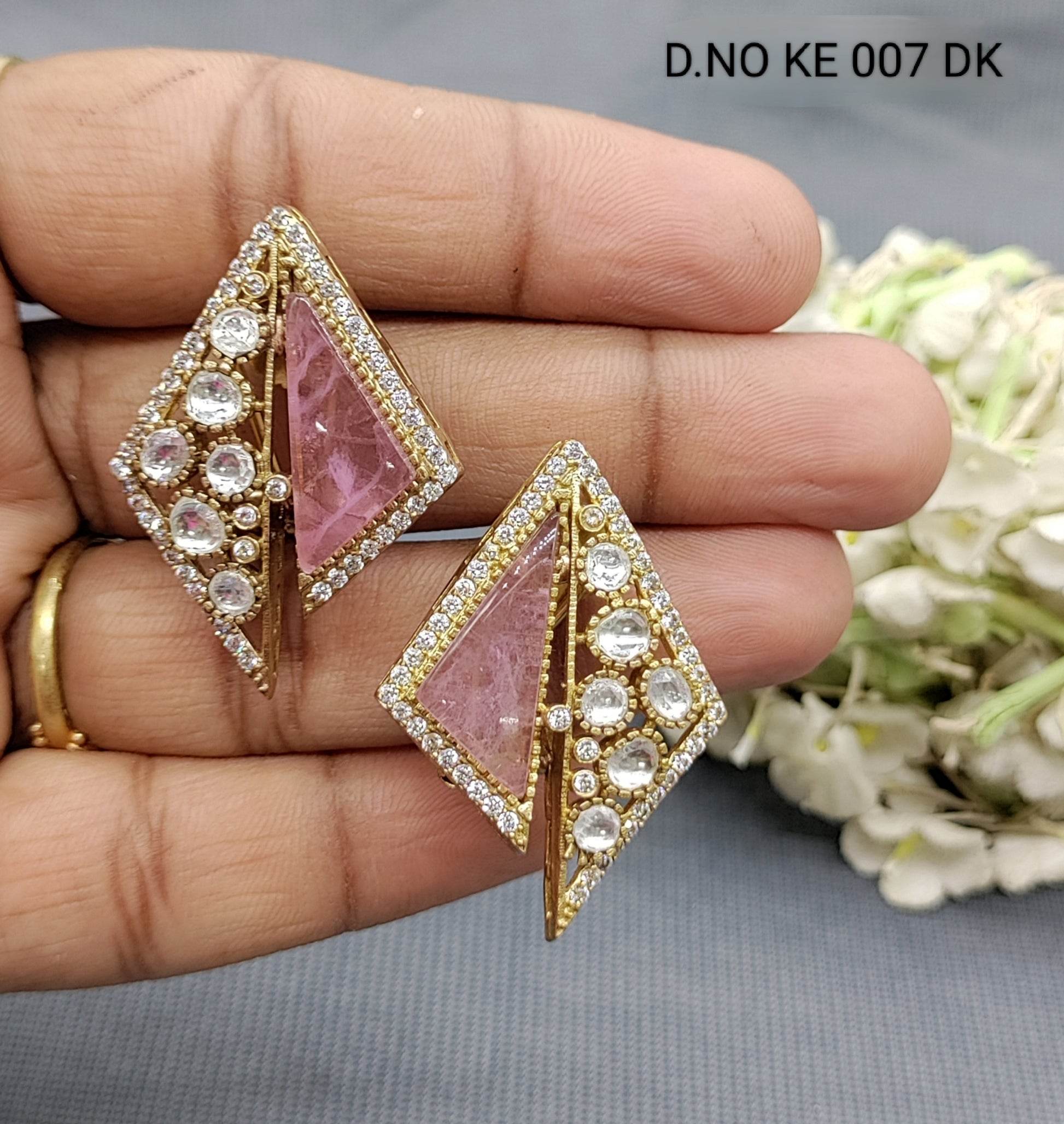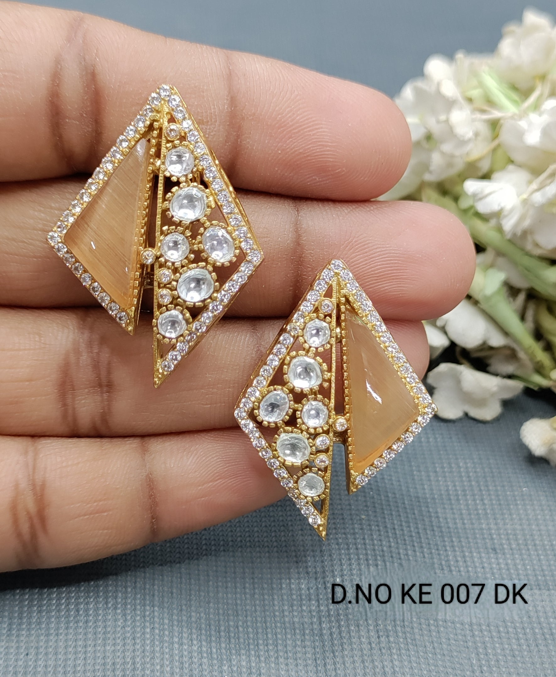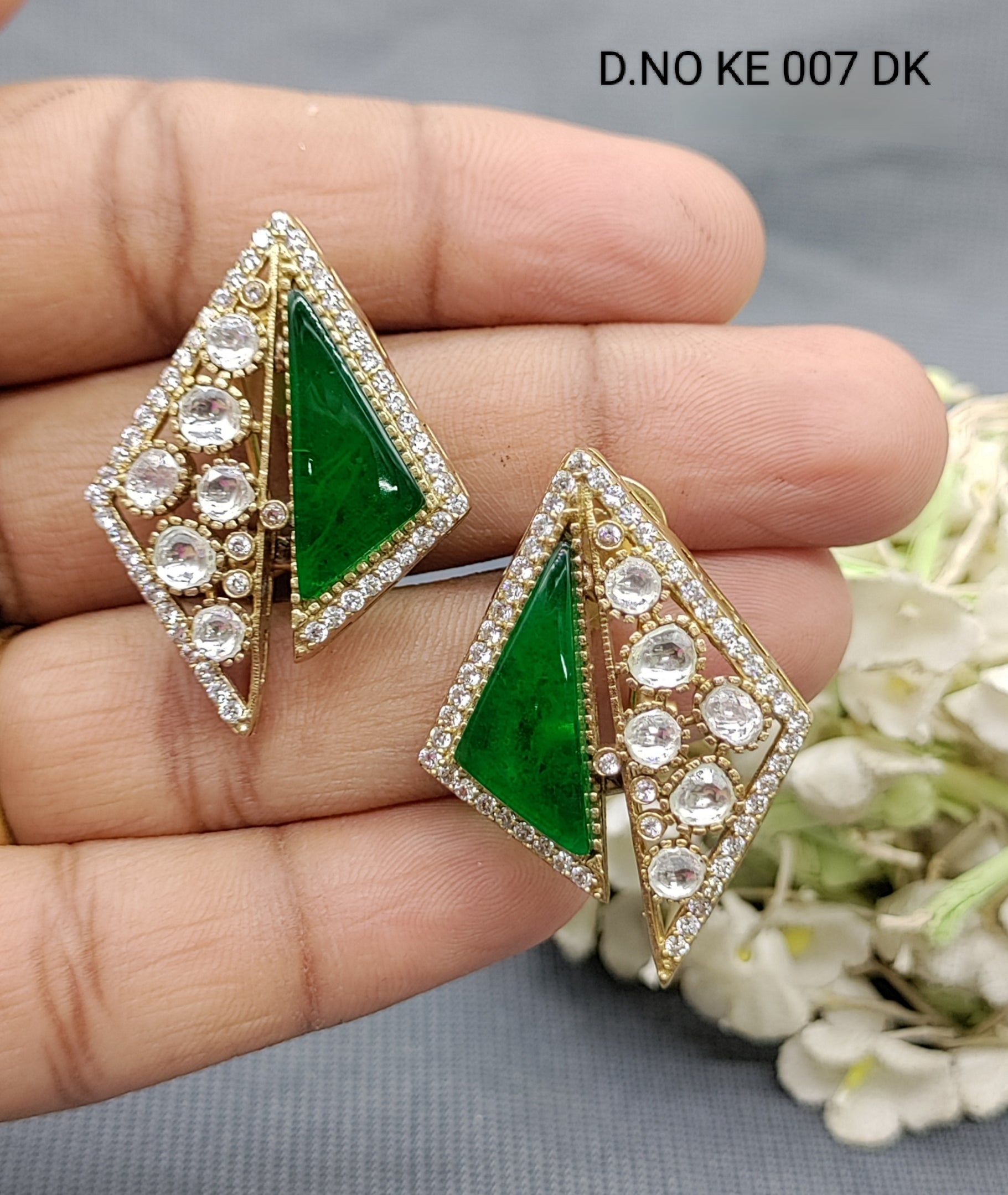 Moissanite Mehandi Top& Stud Earrings Sku KE 007 DK C1