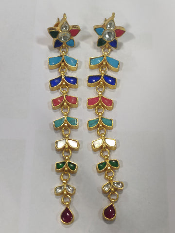Meenakari jewellery is a traditional art form where metal surfaces are decorated with vibrant enamel colours, creating beautiful and intricate designs.