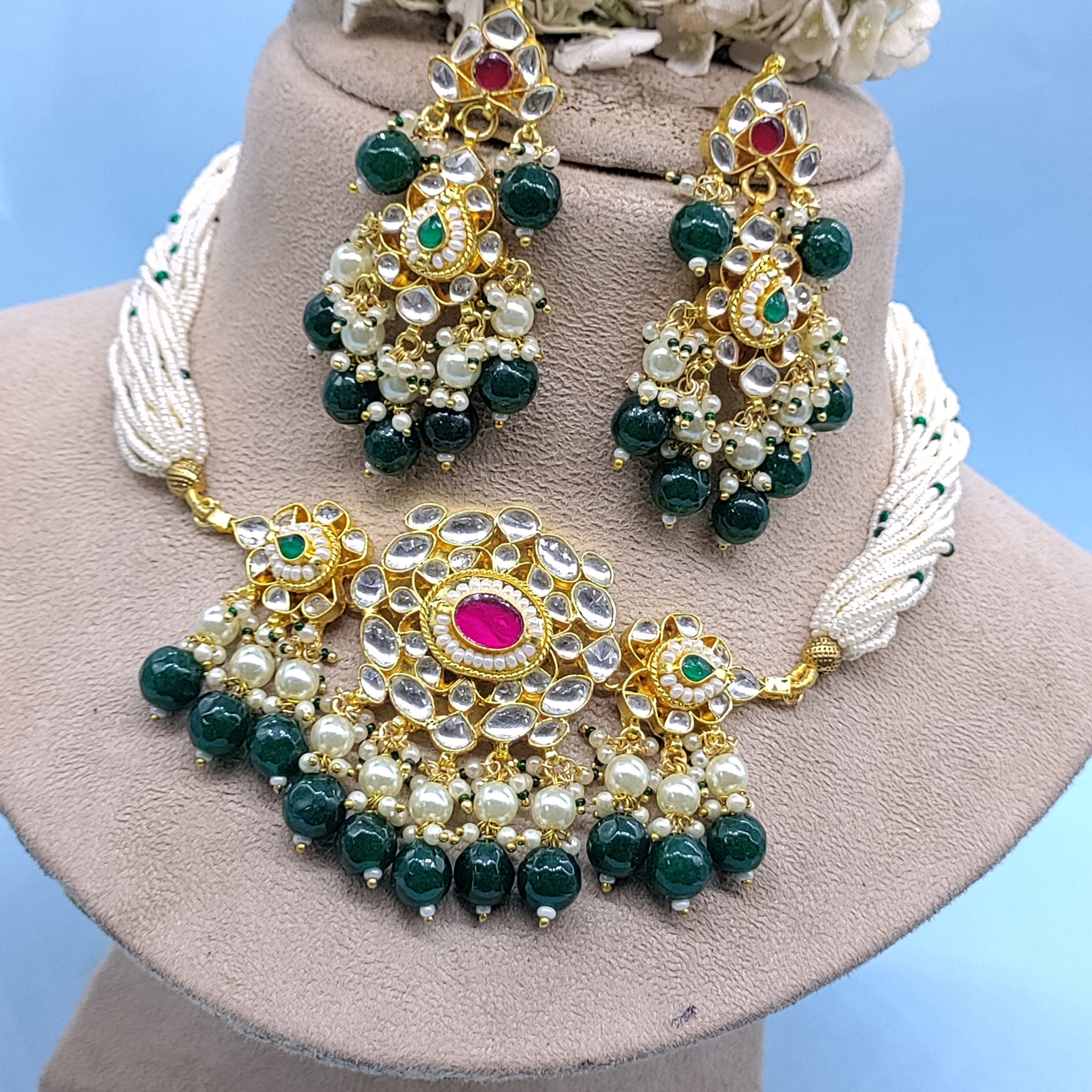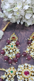 Pachi Kundan necklace. Handcrafted with intricate details and stunning golden accents, this necklace exudes sophistication and can elevate any outfit. Perfect for special occasions or adding a touch of luxury to your everyday wardrobe.