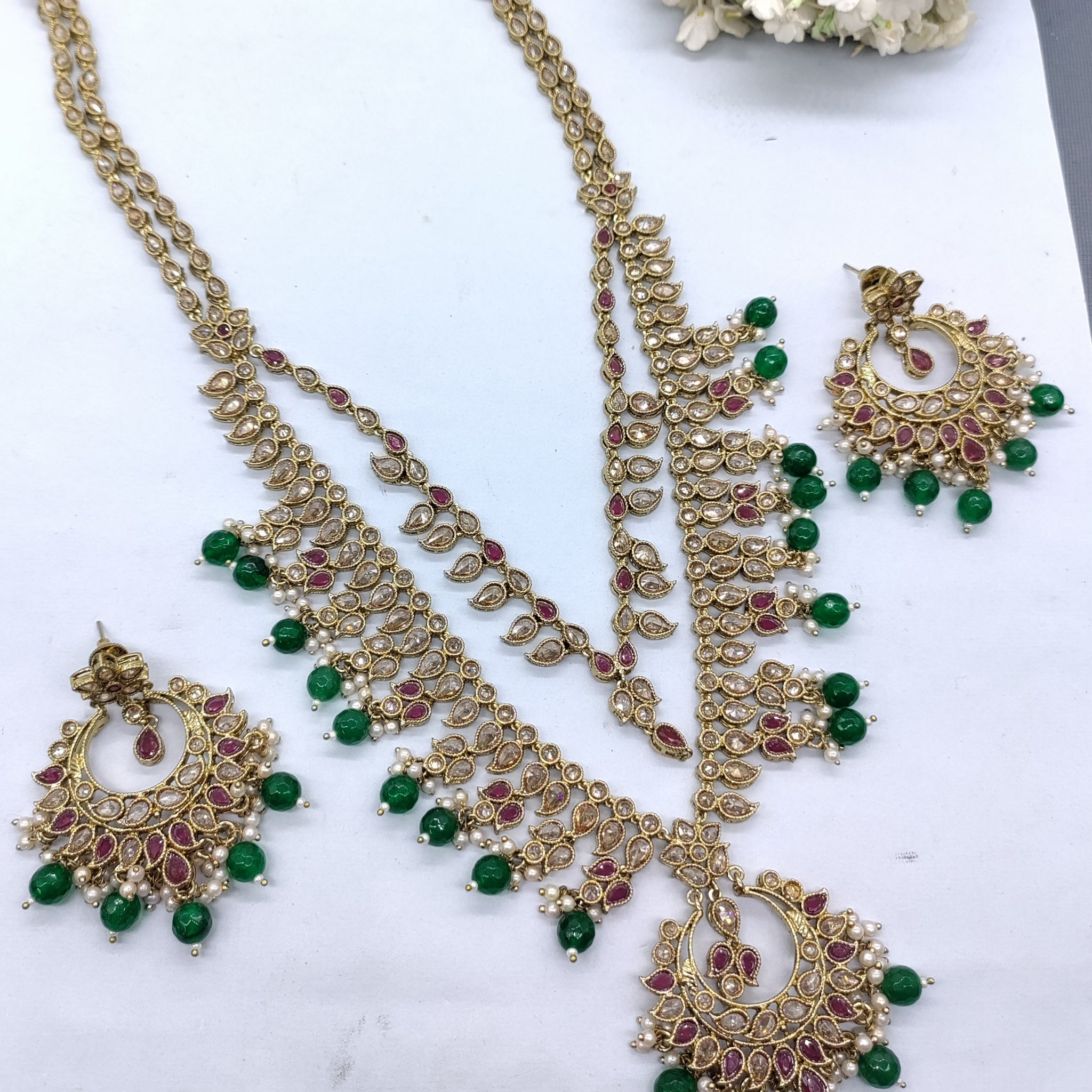 Polki Long Necklace Mehndi Set Sku-5586 B-9