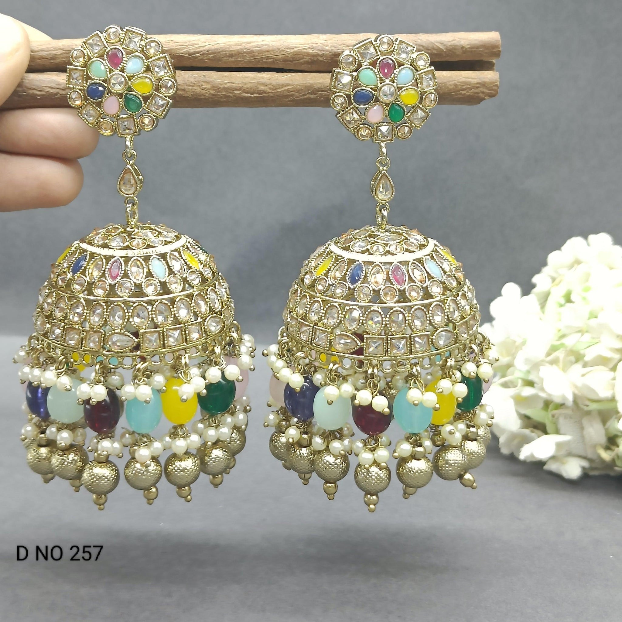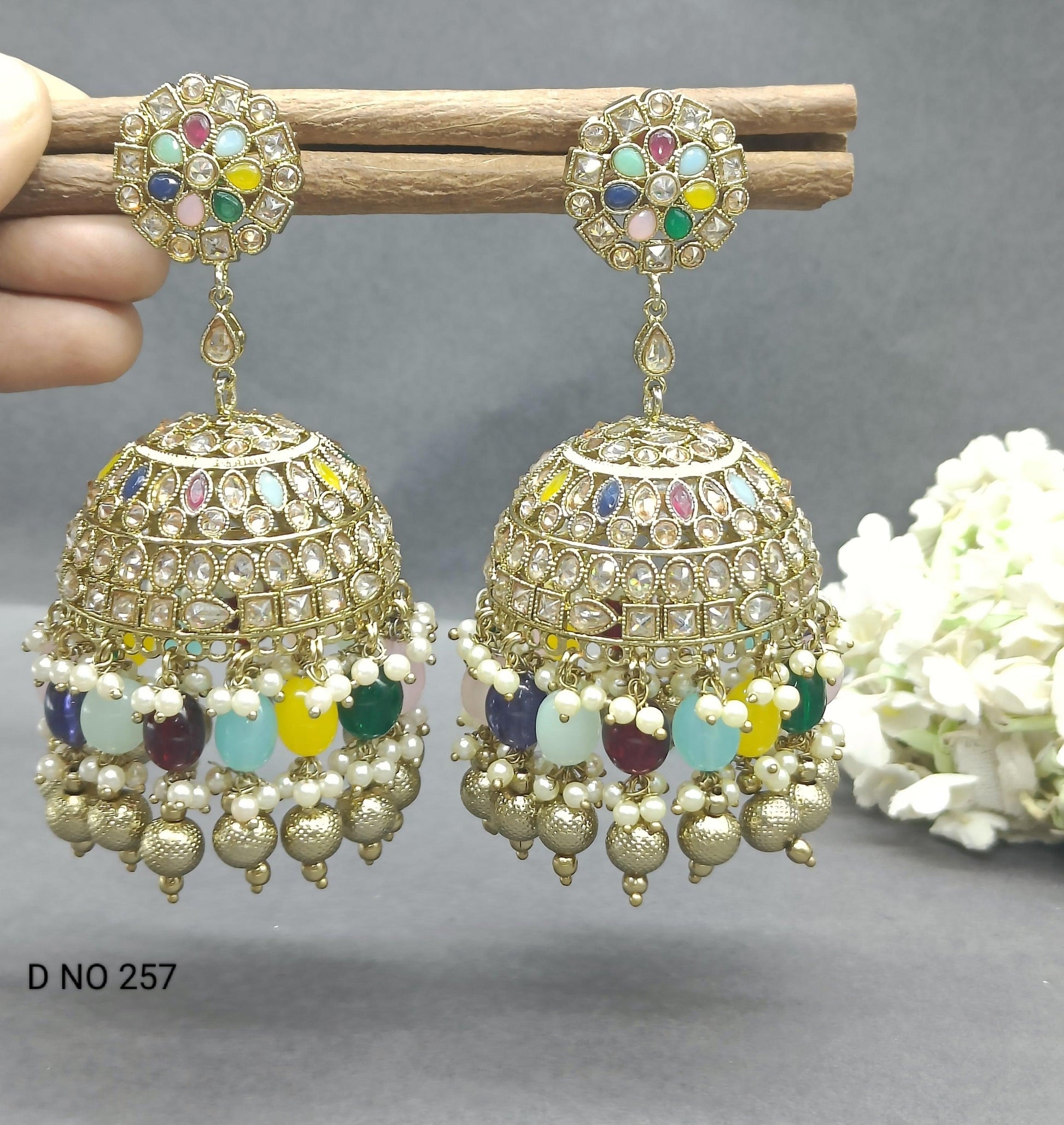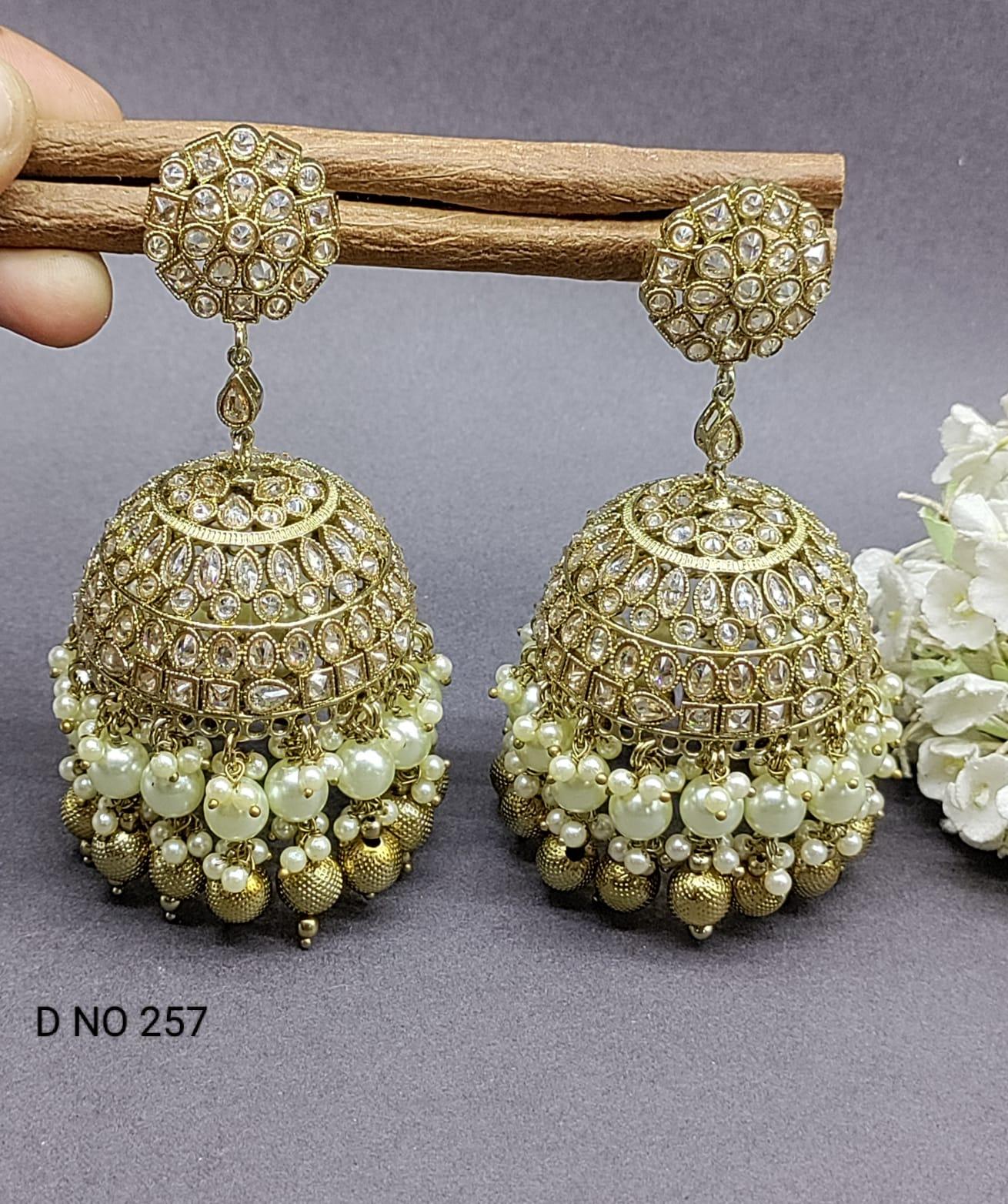 Polki Big Jhumki Earring Mehndi Sku -257 A3