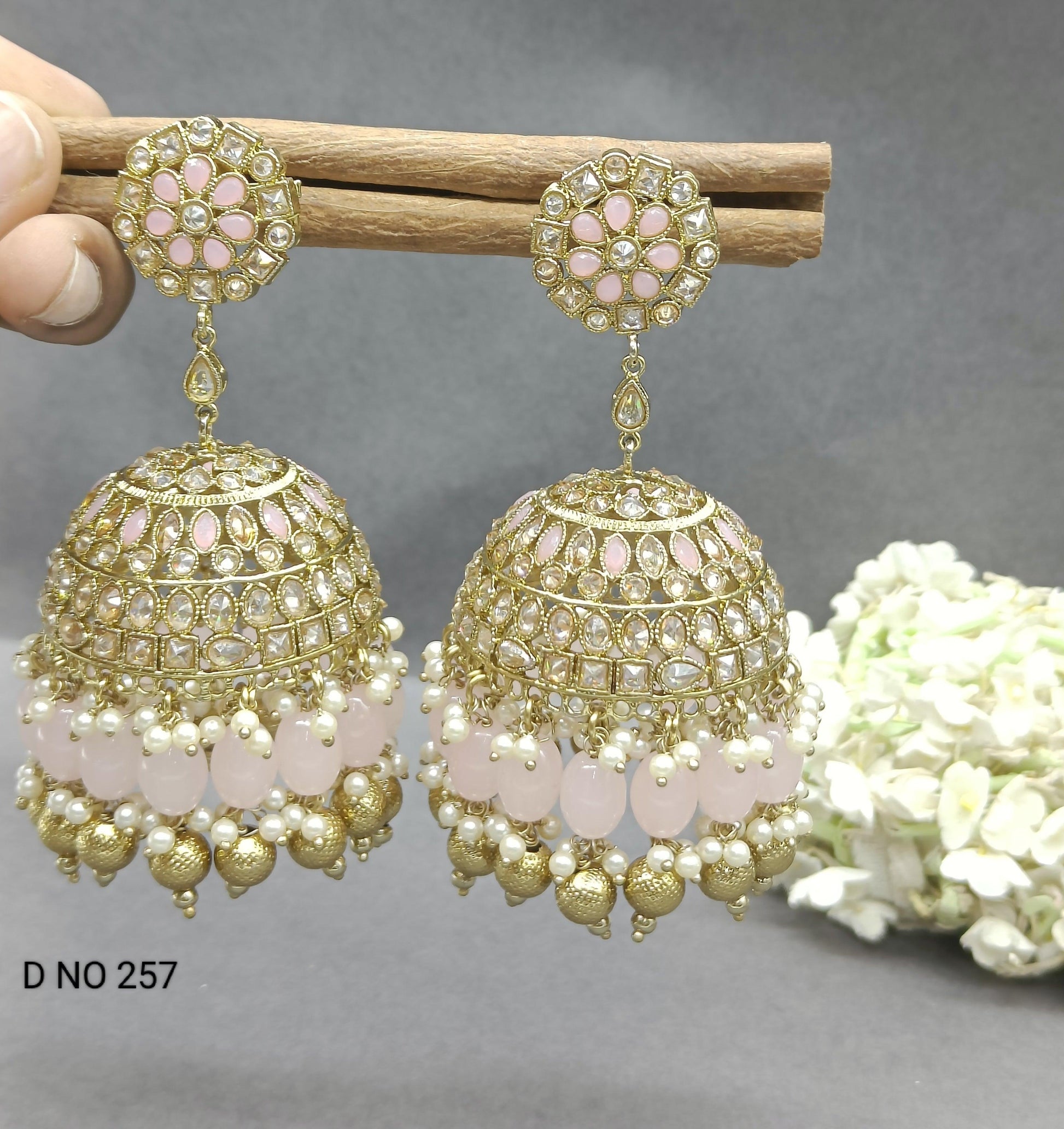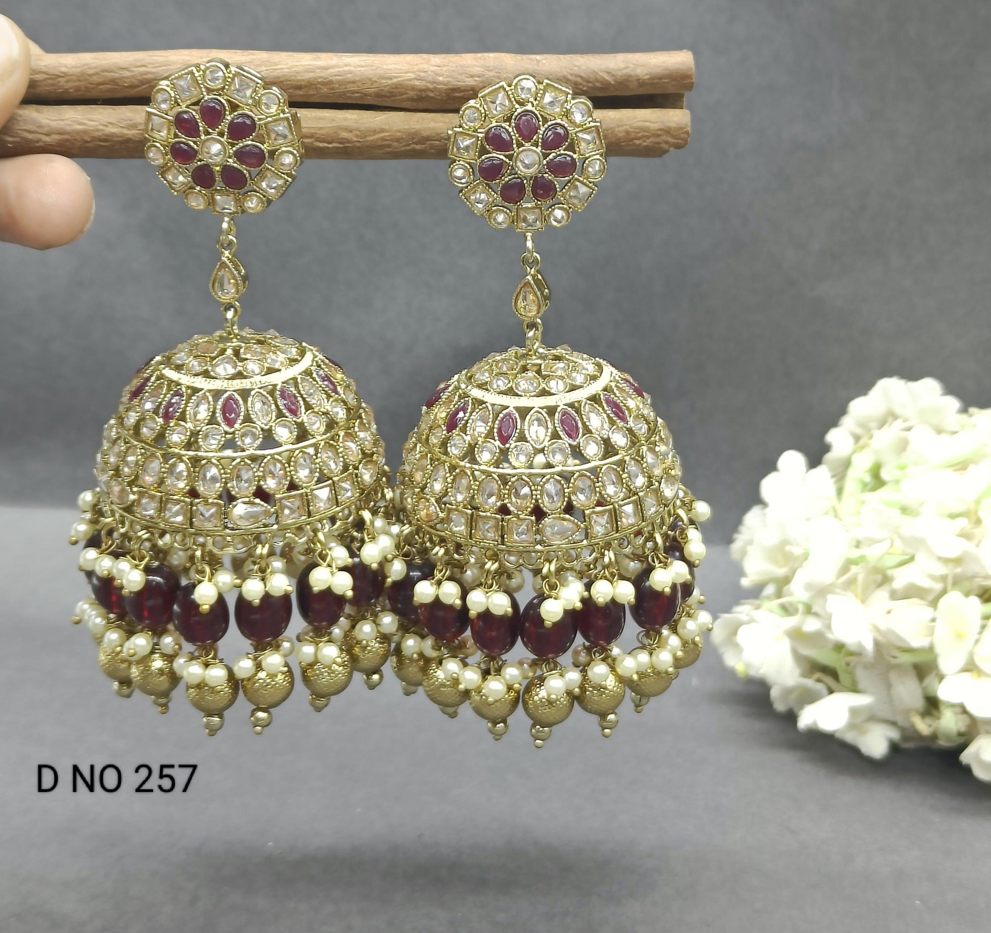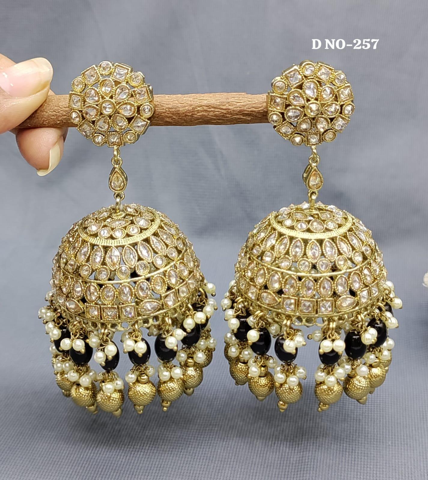 Polki Big Jhumki Earring Mehndi Sku -257 A3