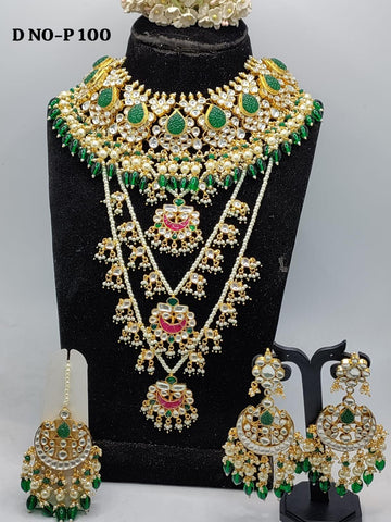 Combo Emraled Green Kundan Bridal Necklace Set Sku- P 100